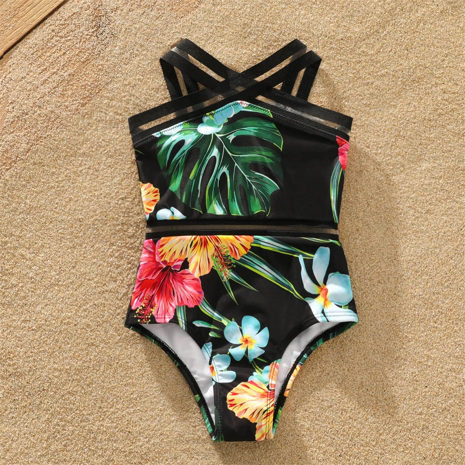 Introducing Our Coconut Tree Print Family Matching Swimwear: Shorts & One-Piece Suit