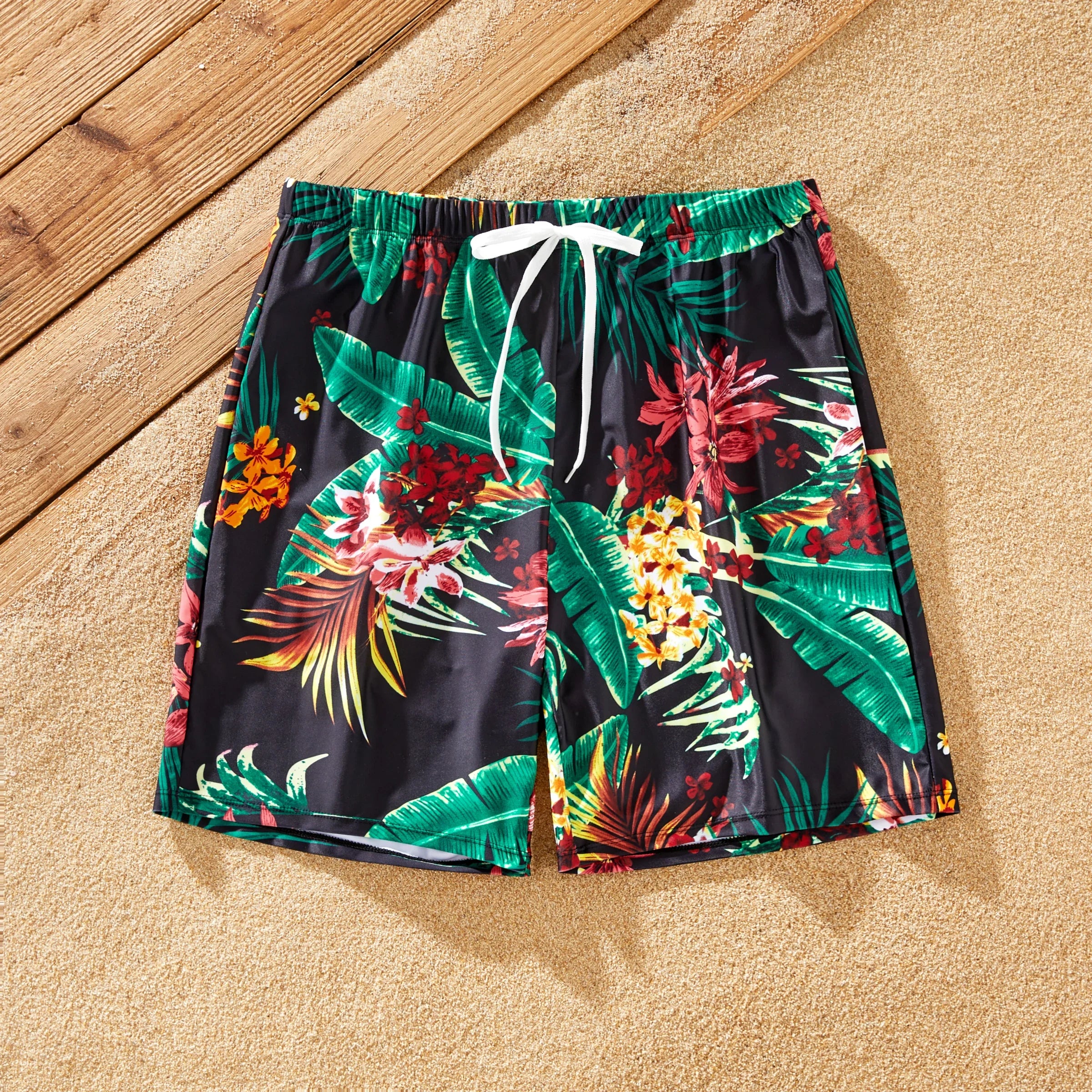 Prepare your family for a memorable summer adventure with our Floral Drawstring Swim Trunks & Halter Top Swimsuit. Made from high-quality polyester material, this swimwear set offers comfort, durability, and style for the whole family. Whether you're lounging by the pool or exploring the beach, our tropical paradise swimsuit is sure to make a splash wherever you go. Order now and get ready to soak up the sun in style!