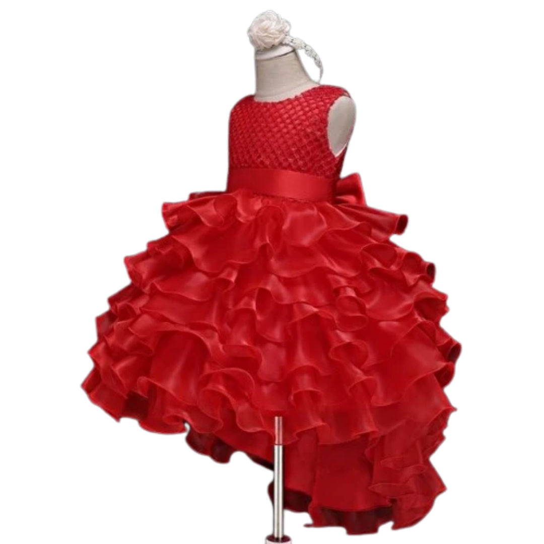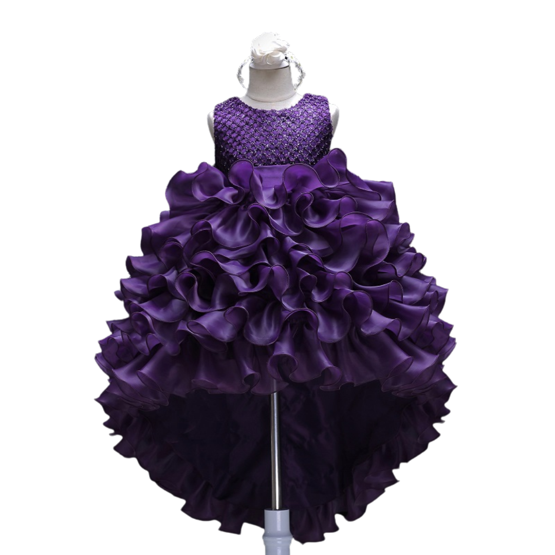 Long Back Puffy Ruffle Dress