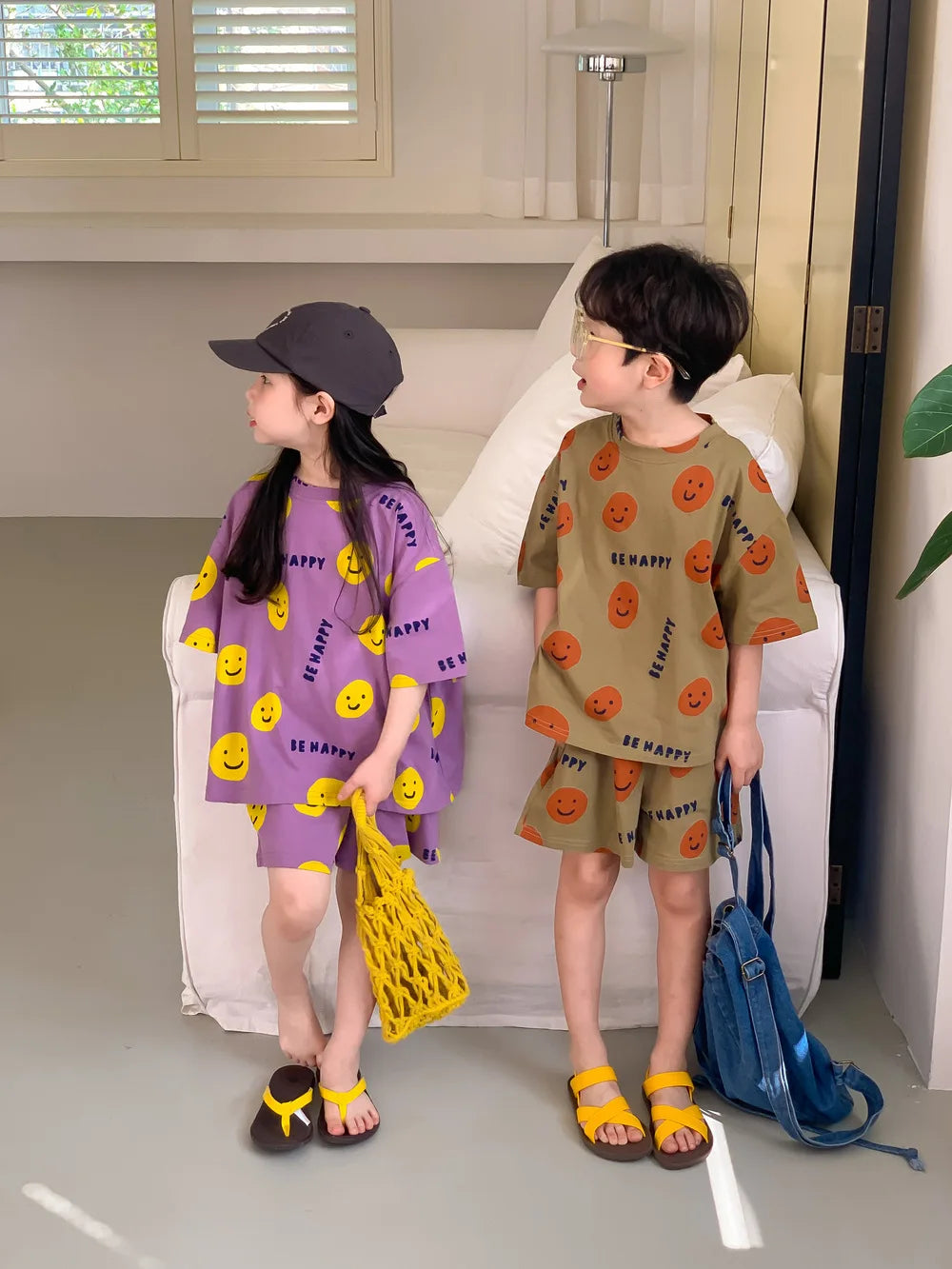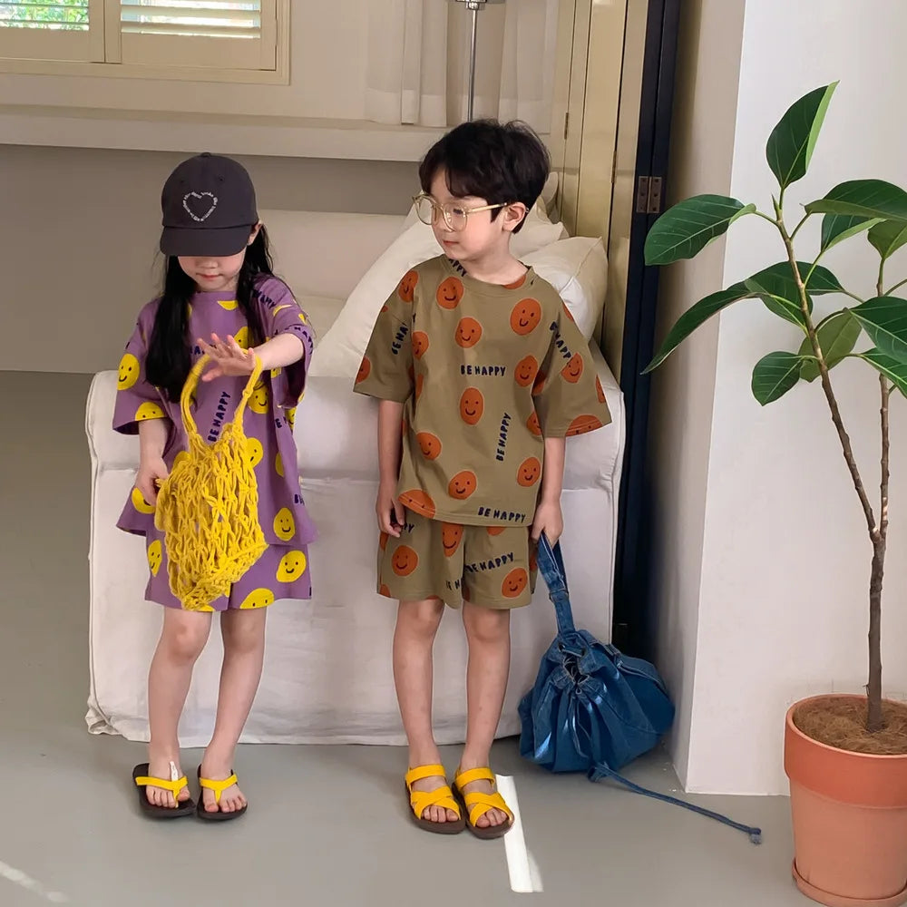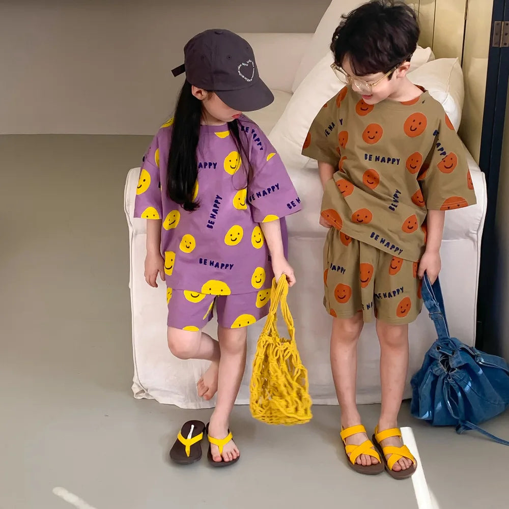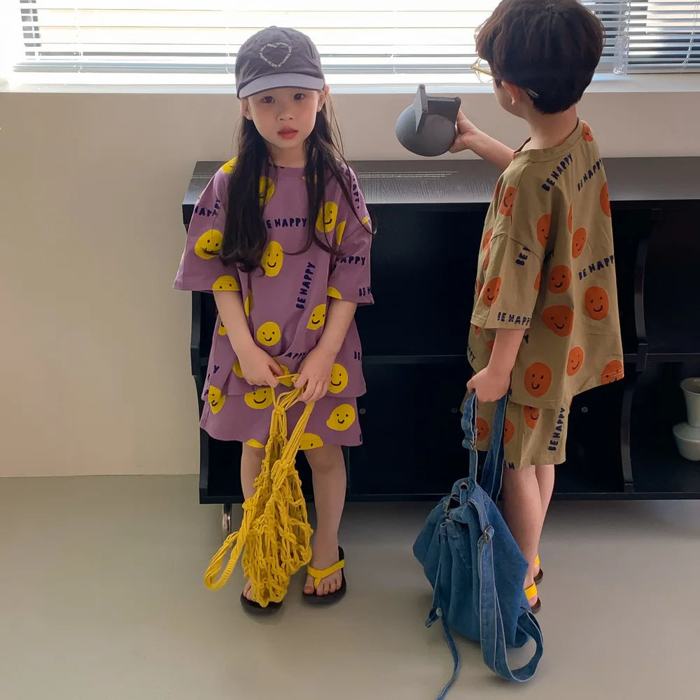Introducing Our Short-Sleeved Shorts Set with Cartoon Smiley Face for Kids