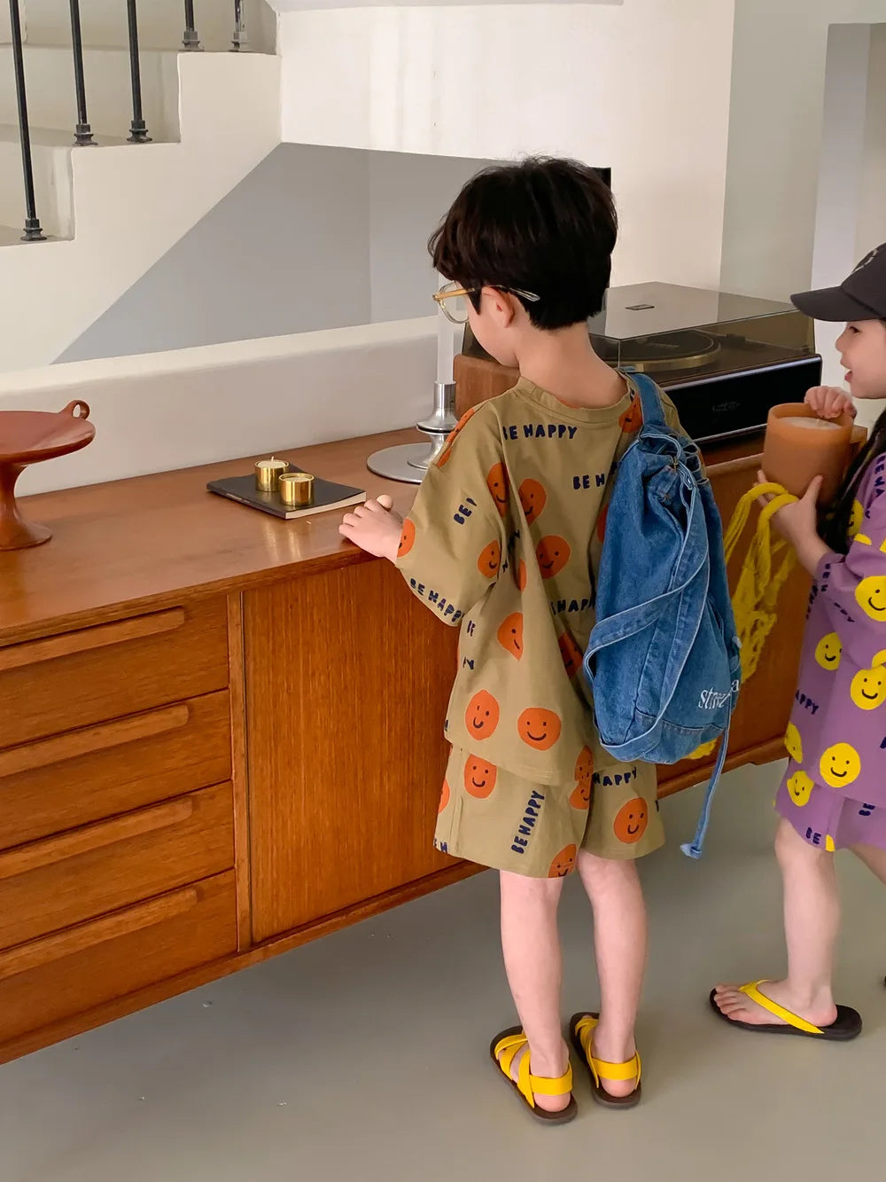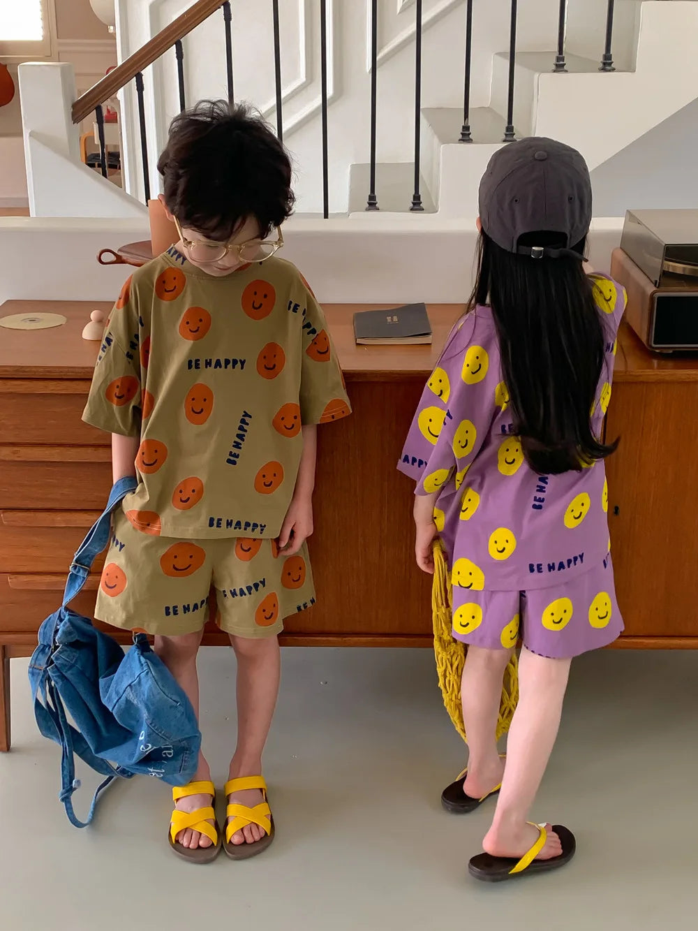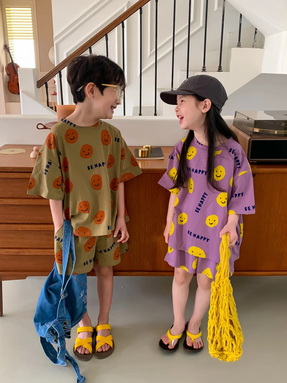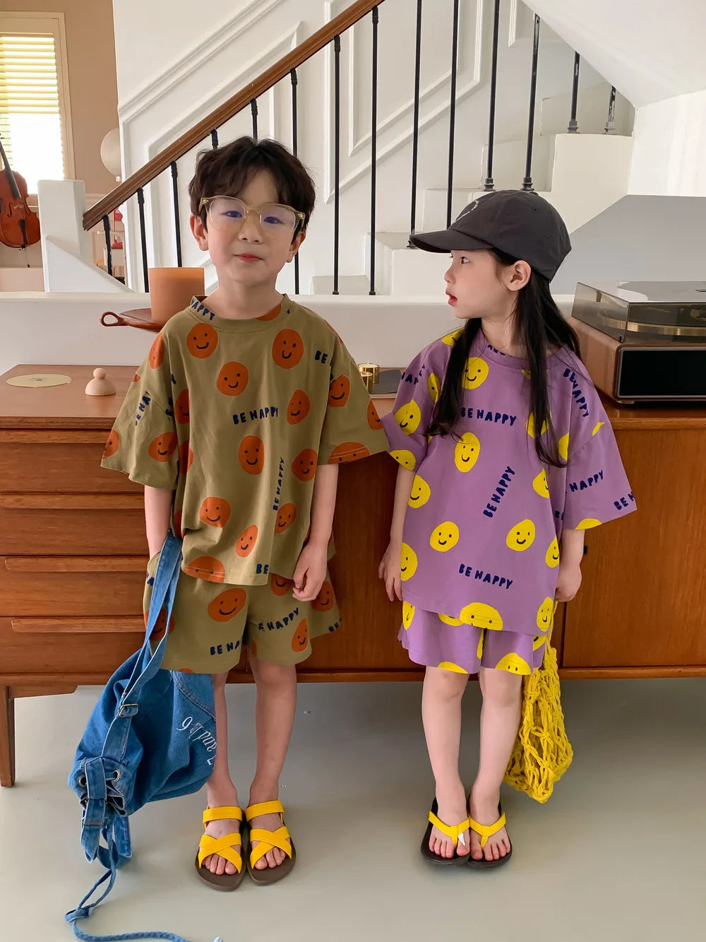 Introducing Our Short-Sleeved Shorts Set with Cartoon Smiley Face for Kids
