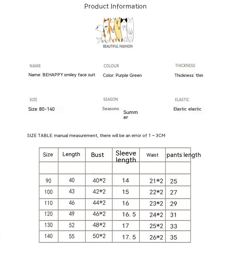 Elevate your child's summer wardrobe with our adorable Short-Sleeved Shorts Set featuring a playful Cartoon Smiley Face design! Made from a blend of high-quality cotton and polyester, this set offers both comfort and style for your little one's everyday wear.