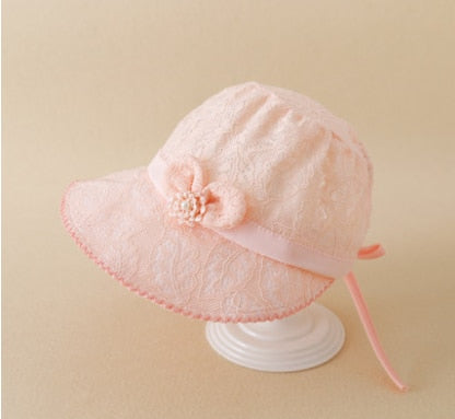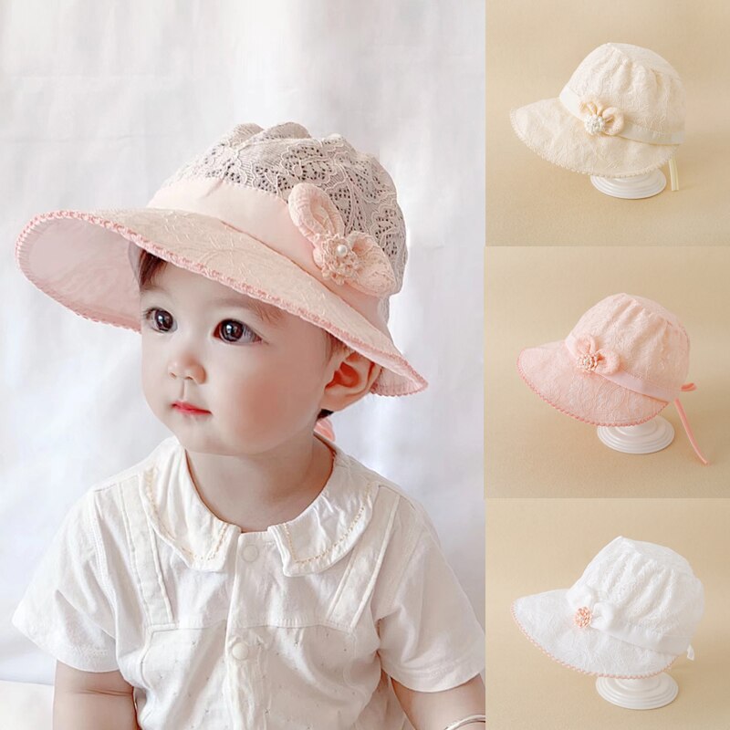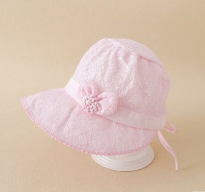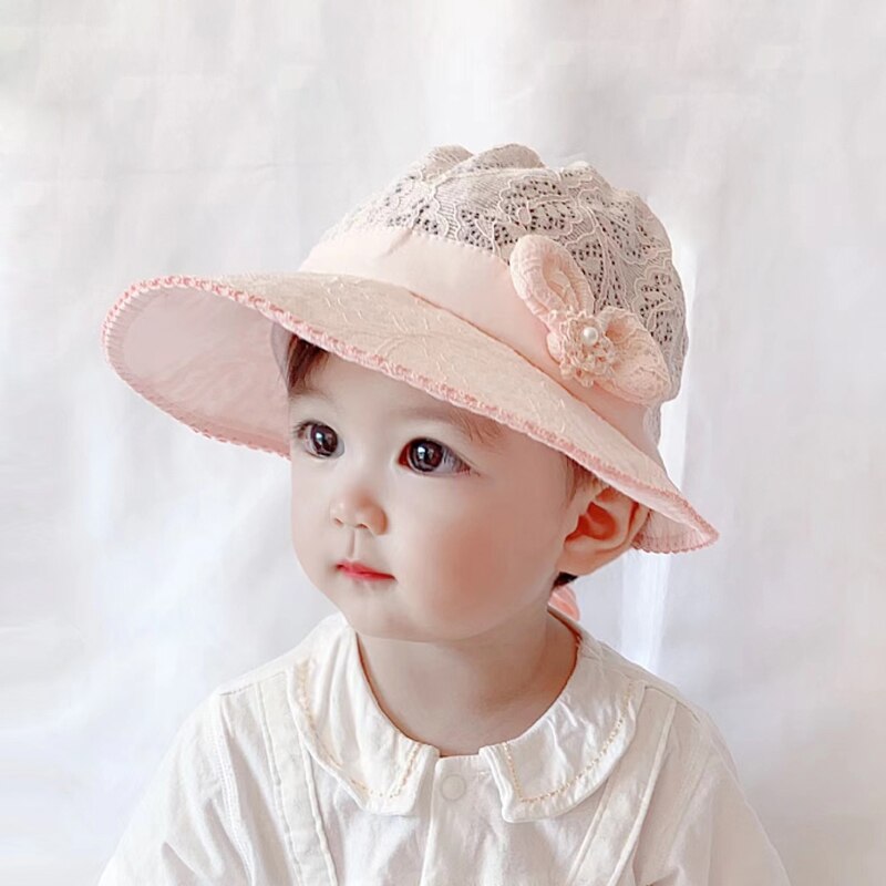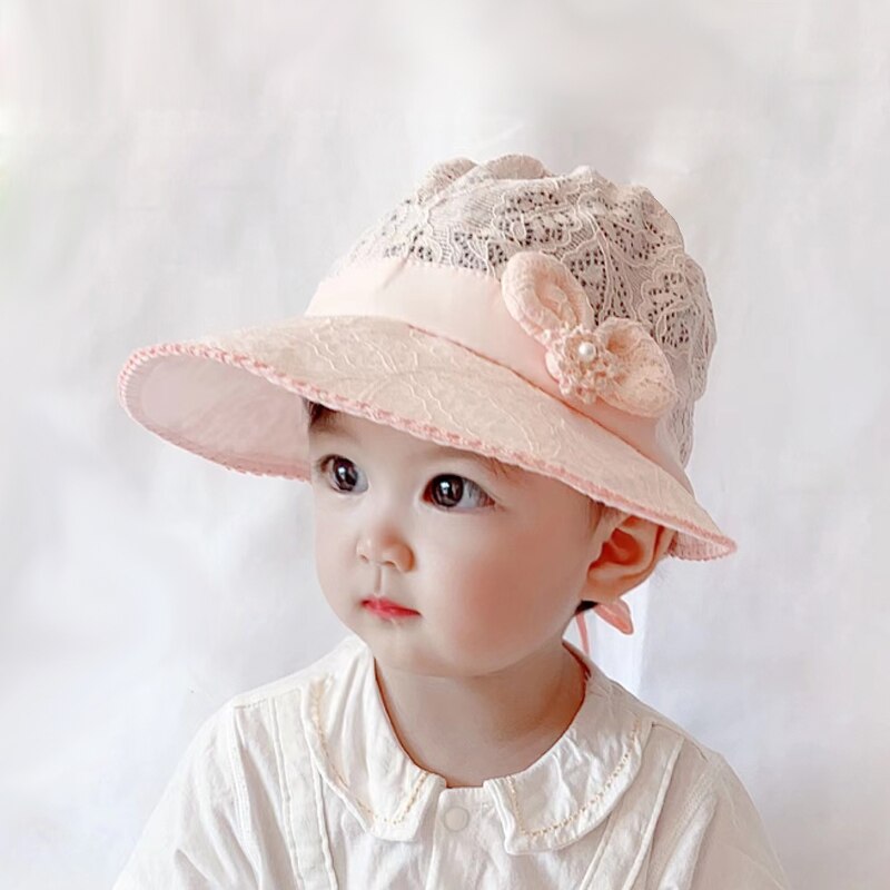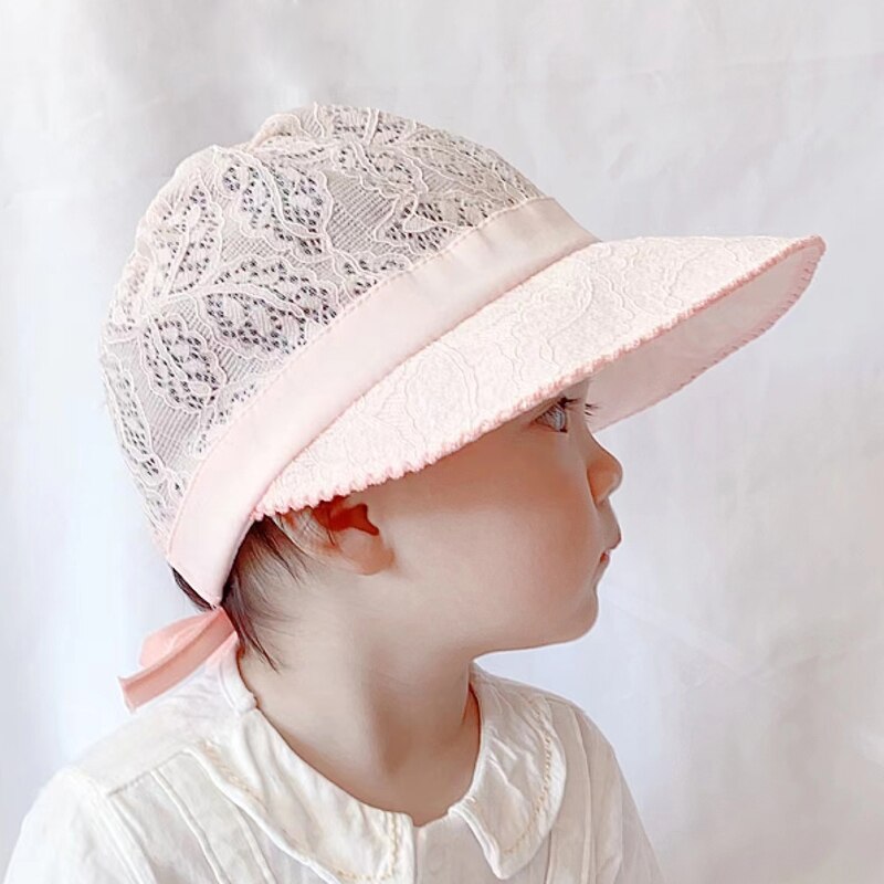 This lace hat is a must-have accessory for mothers looking to coordinate their baby's outfit in the summer. The hat is made of soft material and comes in trendy colors that are perfect for baby girls