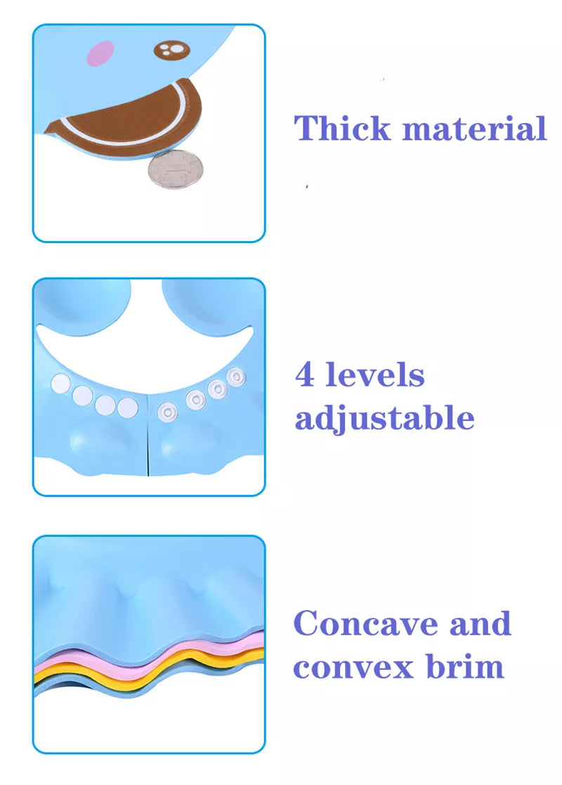 Unsere Kappe ist nicht nur wasserdicht, sondern auch unschädlich für Babys und riecht nicht unangenehm. Sie wirkt wie eine Schutzbarriere und verhindert, dass Shampoo und Badewasser in die Augen und das Gesicht Ihres Babys gelangen. So ist ein tränenfreies und sicheres Bad gewährleistet.