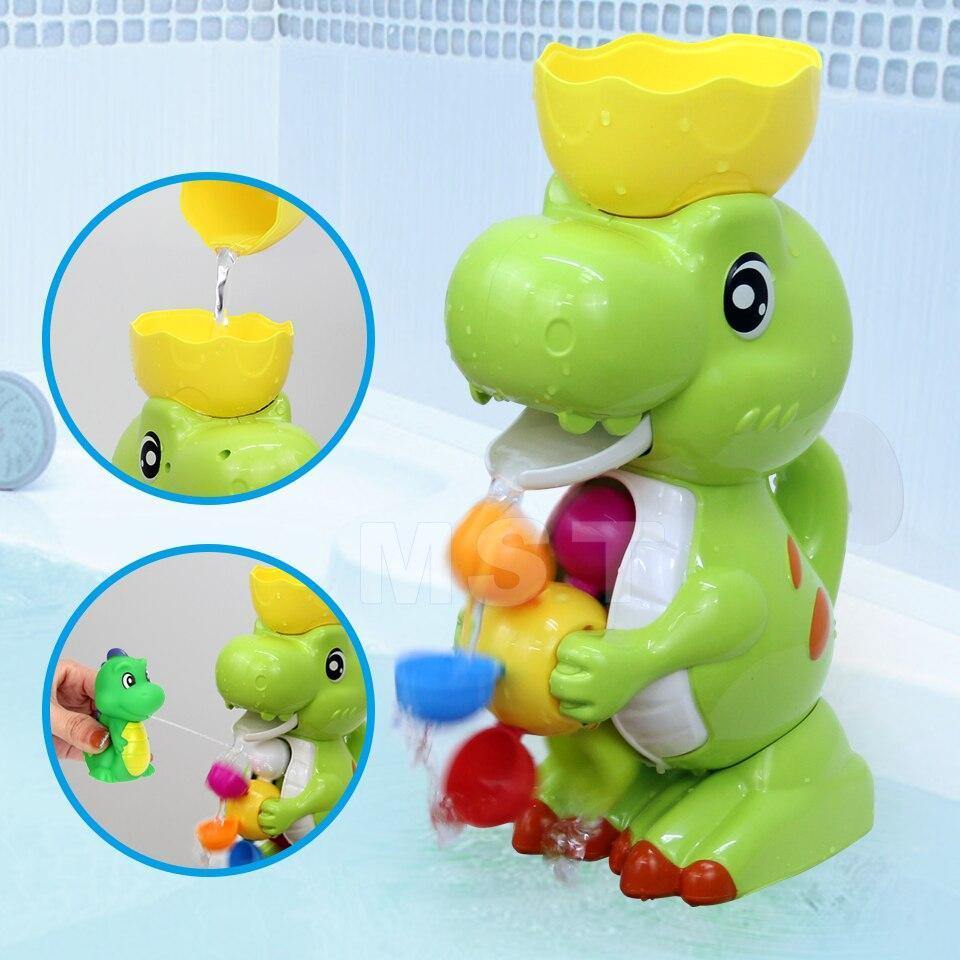 Das farbenfrohe und einzigartige Dinosaurier-Babyspielzeug zieht sofort die Aufmerksamkeit des Kindes auf sich. Dies ist eine gute Möglichkeit, Ihr Baby während der Badezeit zu unterhalten. Wenn sich die Dinosaurier drehen, sprühen sie Wasser, was die Augen der Kleinen fesselt.