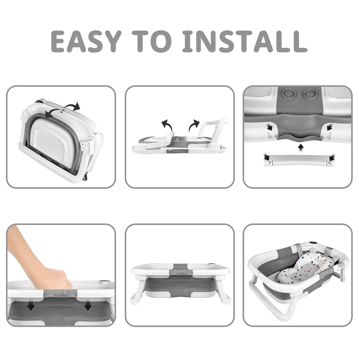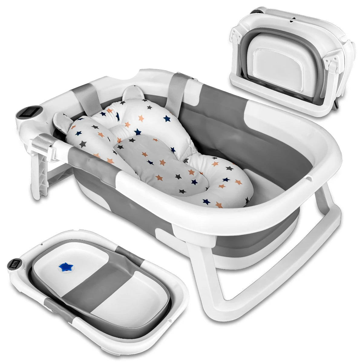 Foldable Baby Bathtub with Thermometer & Soft Cushion – Portable Travel Tub for Newborns & Toddlers