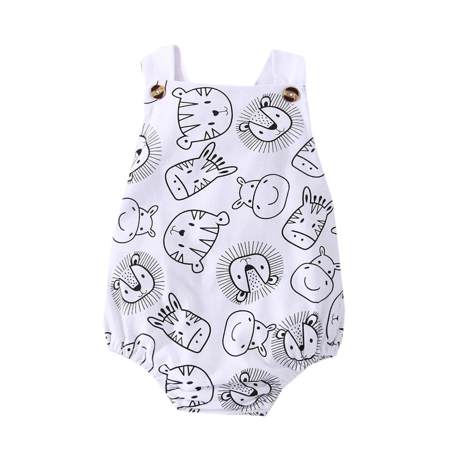 Verleihen Sie Ihrem Kleinen mit unserem bezaubernden ärmellosen Jumpsuit mit Tiermuster für Babys ein modisches Highlight. Dieses stylische Kleidungsstück vereint Komfort und Trend und ist ein Must-have für die Garderobe Ihres Babys.