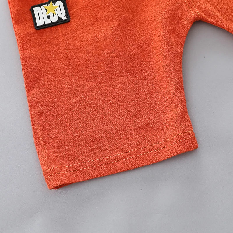 This delightful set features a stand-up collar shirt adorned with a vibrant dinosaur print, creating a whimsical and trendy look. The coordinating short sleeves complete the ensemble, making it perfect for various occasions.