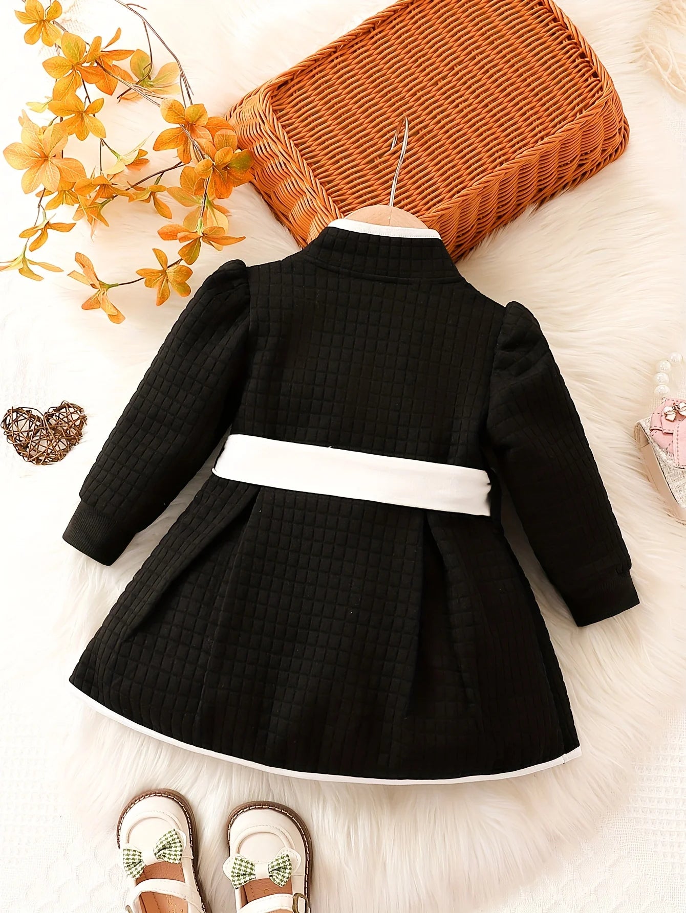 Fashionable Thermal Belted Dress Set for Baby Girls