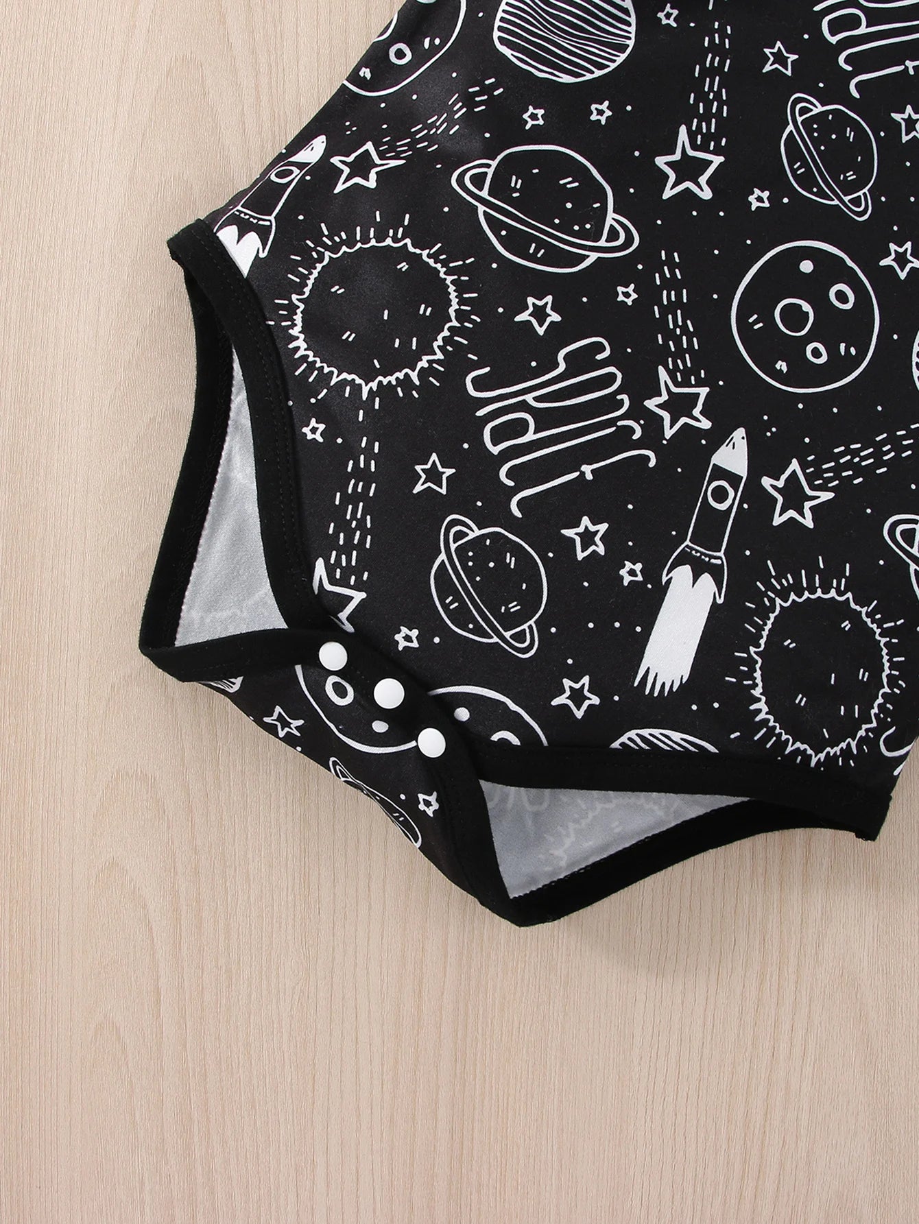 Space Romper: Ignite your baby's imagination with the charming Space Romper. Made from a blend of soft COTTON and durable Polyester, this romper ensures a cozy and breathable fit. The short sleeves provide freedom of movement, ideal for those energetic explorations.