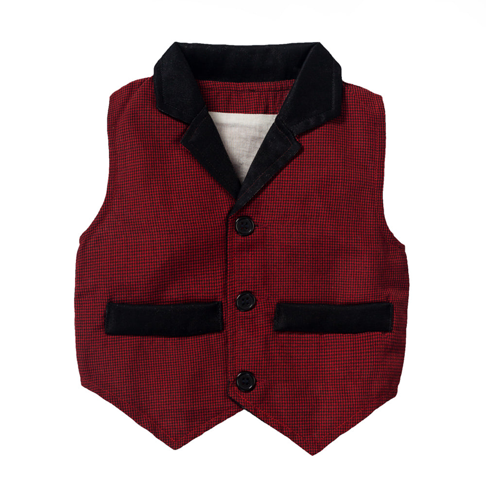 Der hübsche Look der Baby-Kleidungssets ist genau das, was Ihr kleiner Junge mit diesem formell-lässigen Latzhosen-Kleidungsset haben würde. Bringen Sie die Niedlichkeit Ihres kleinen Jungen noch mehr zur Geltung mit unserem Chubibi Jungen Langarm-Top, roter Weste und Hosenträgerhosen-Set.