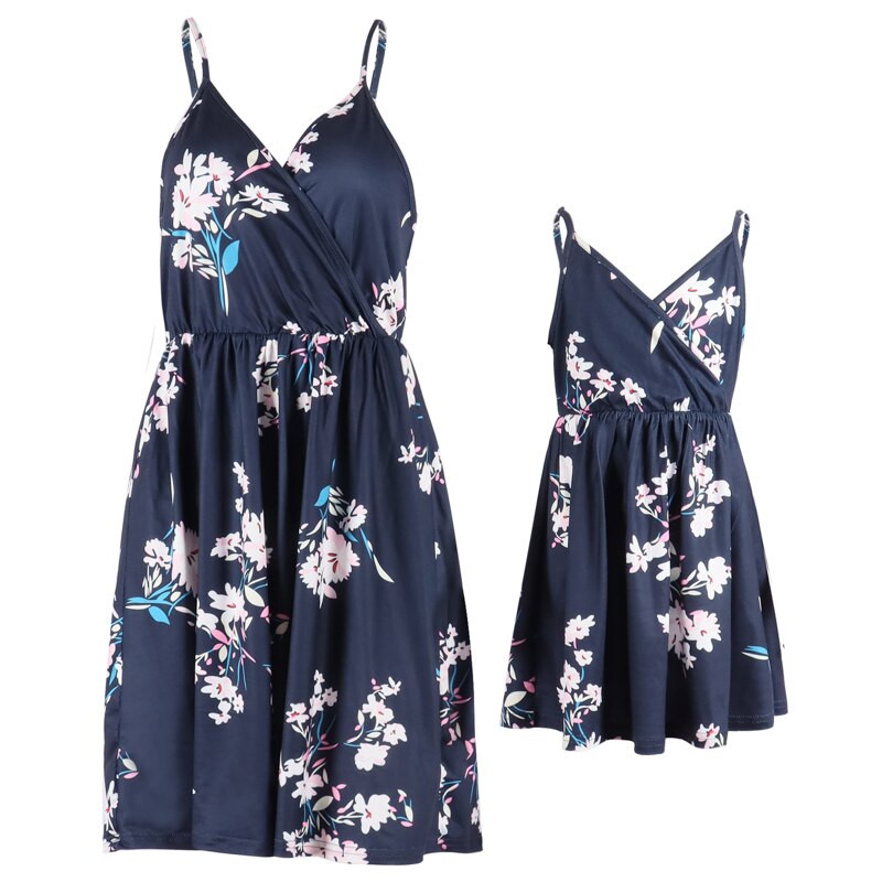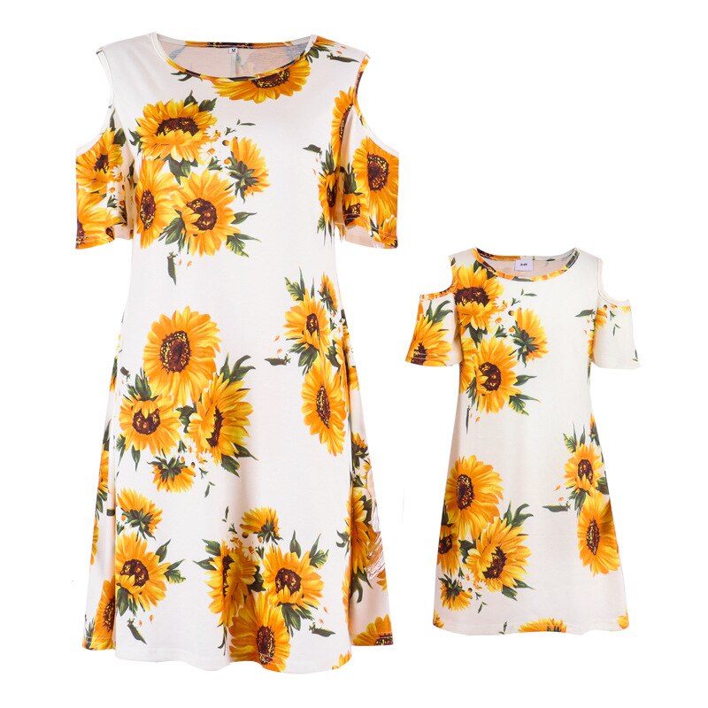 Mutter- und Babykleid mit hübschem Sonnenblumenmuster. Mutter-und-Baby-Shirt-Set mit zartem Schnitt und minimalistischem Design, das einen eleganten und coolen Look verleiht.