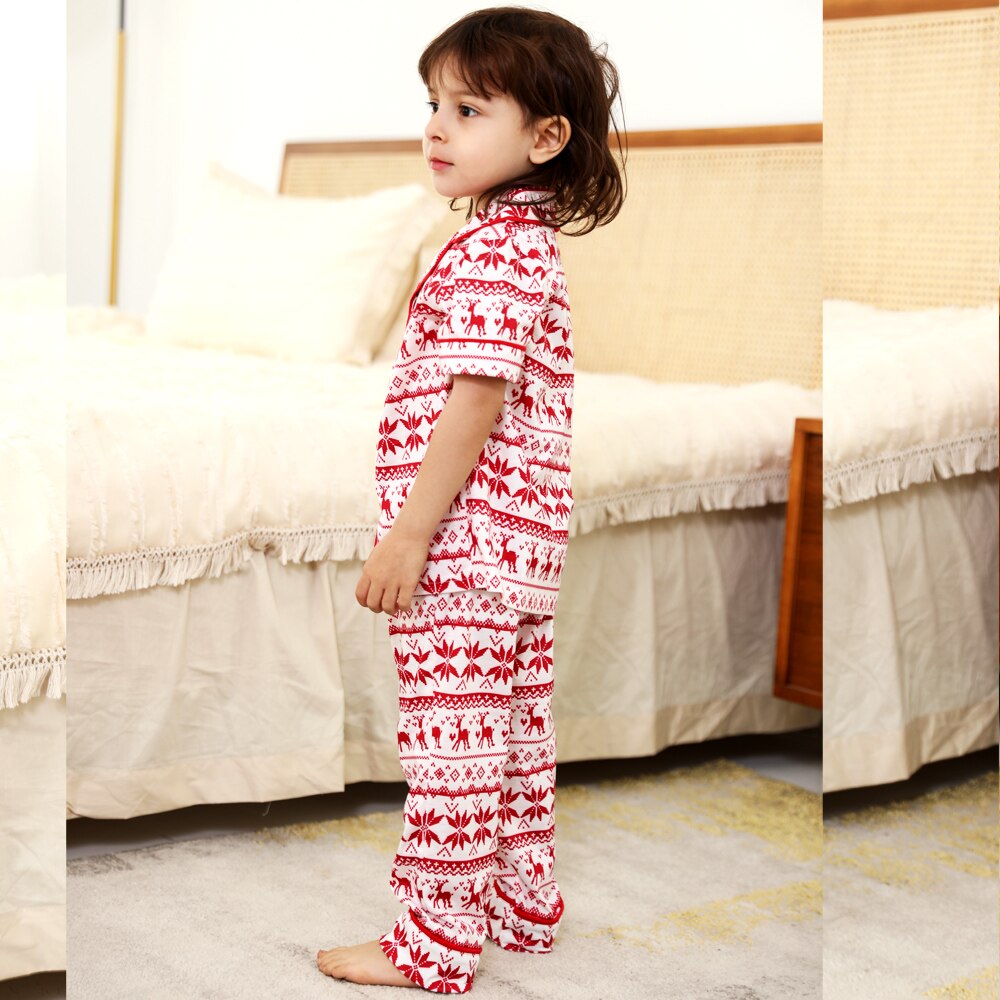 Dieses Pyjama-Set besteht aus einem kurzärmeligen Oberteil und einer langen Hose. Mit seinem schlichten und dennoch eleganten Design trägt es zur festlichen Stimmung an Weihnachten bei und lässt Sie noch charmanter wirken.