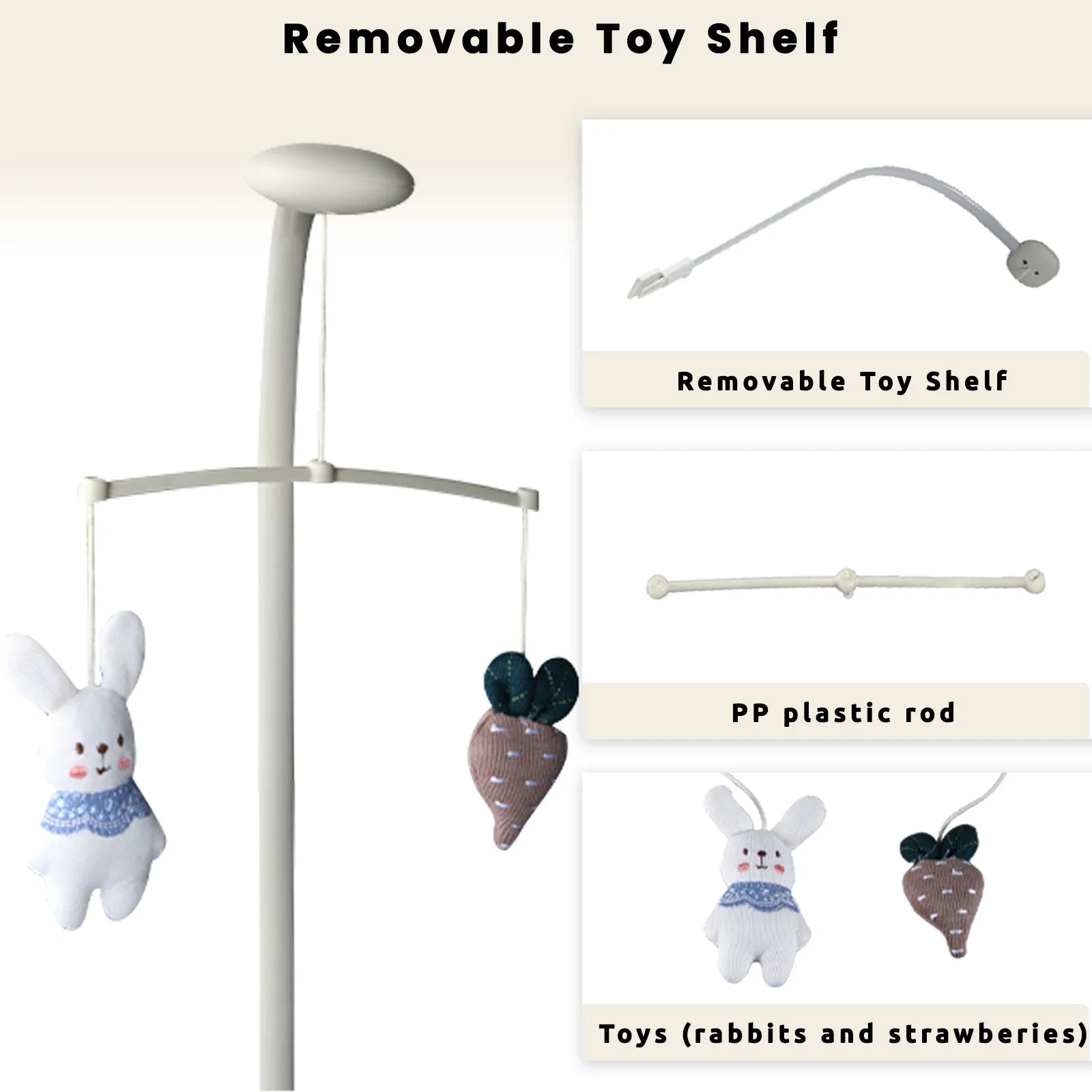 1× Removable Mobile Toy Arm with Hanging Toys (e.g., Bunny and Carrot)
