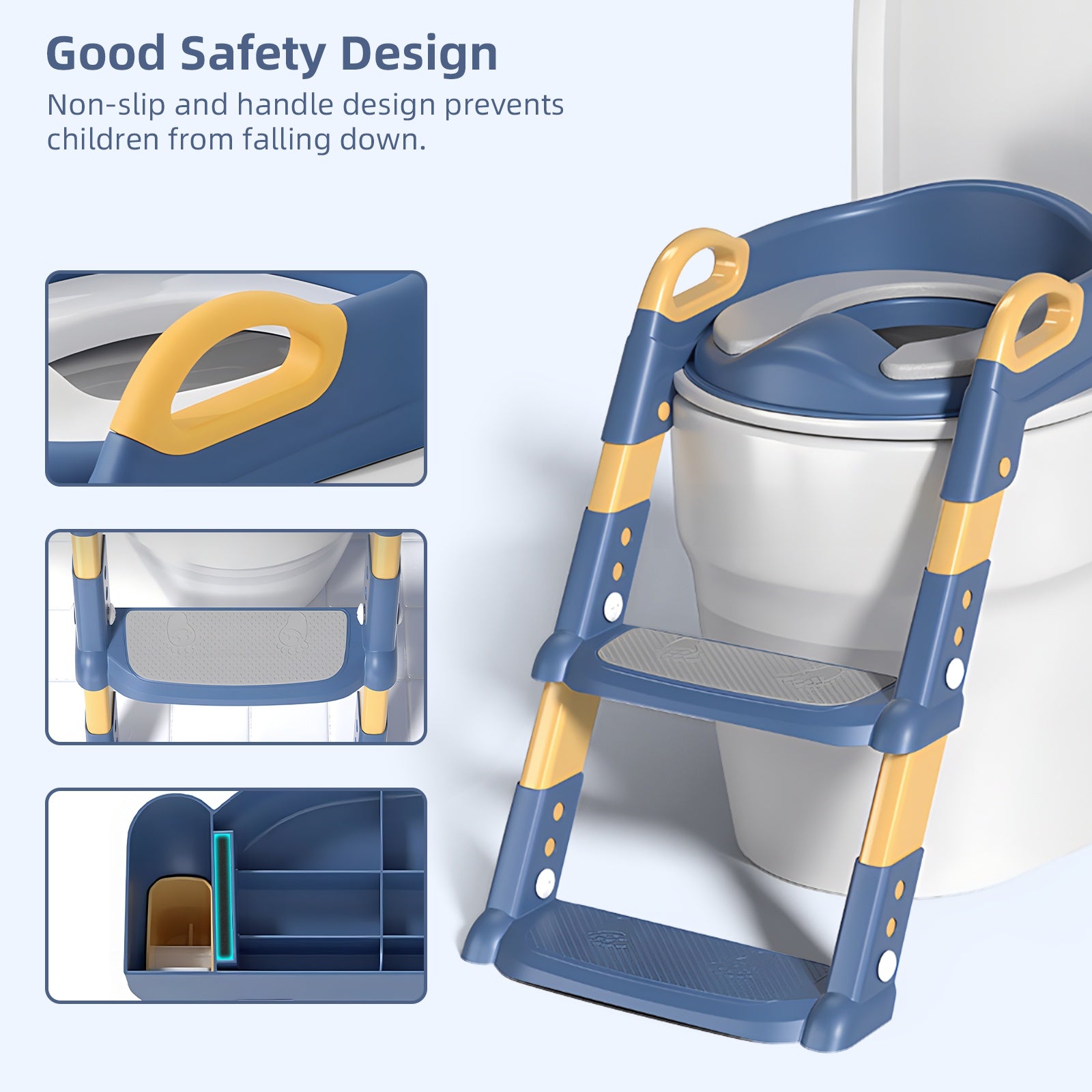 Toilet Potty Training Seat with Step Stool – Adjustable Height, Anti-Slip Base, Soft Cushion, Foldable, Comfortable for Toddlers