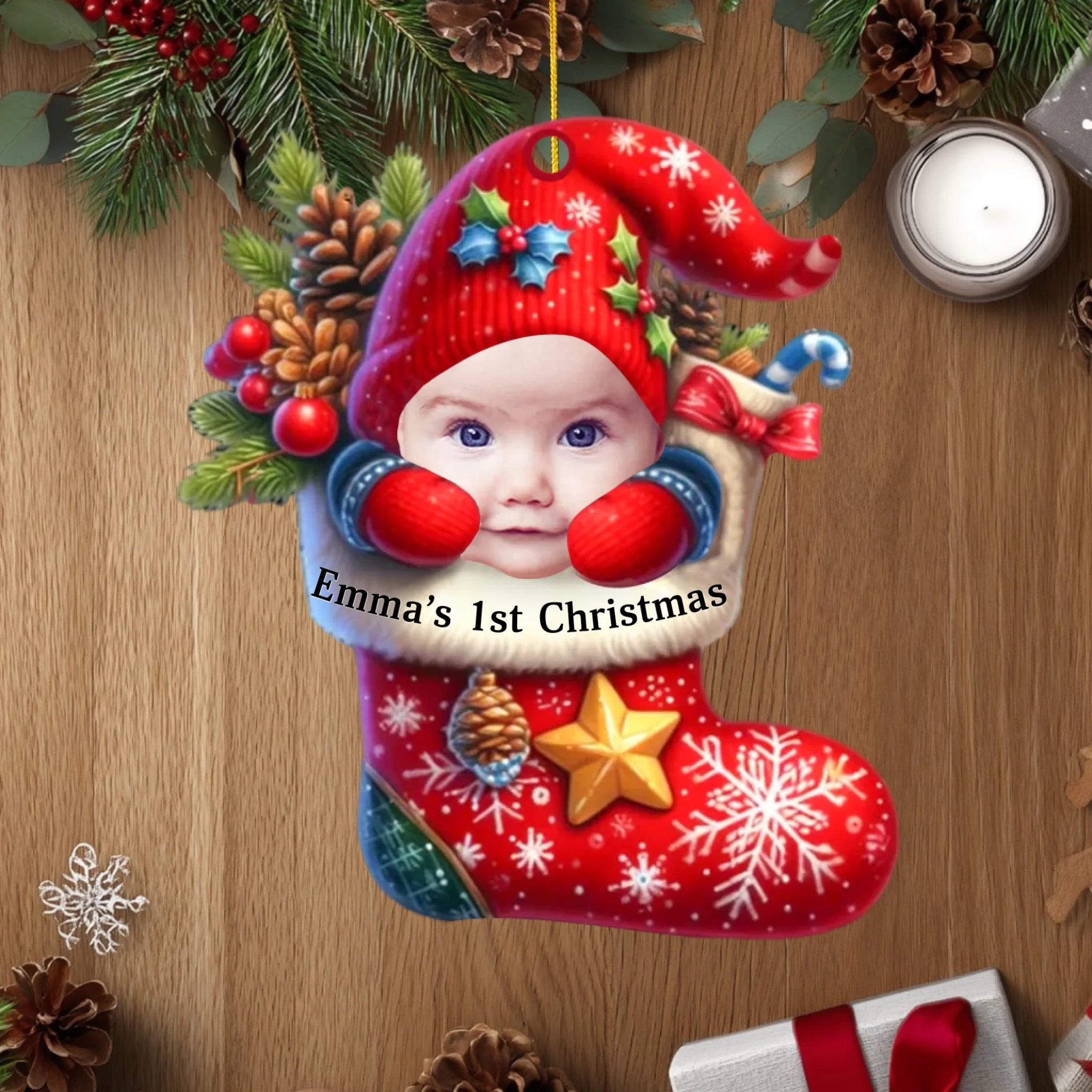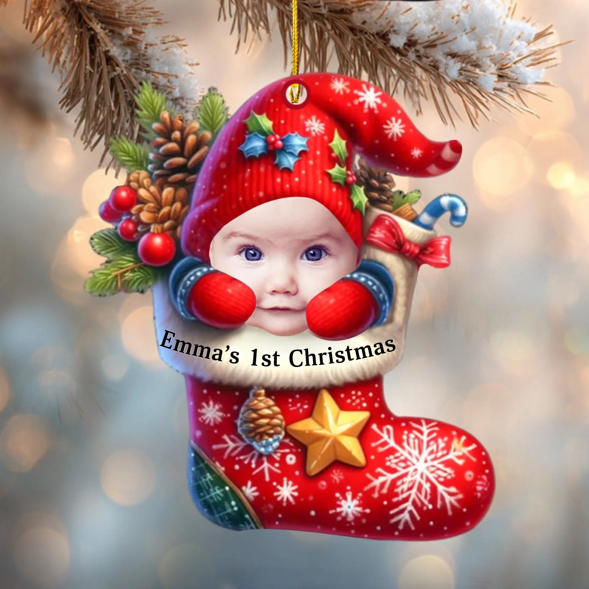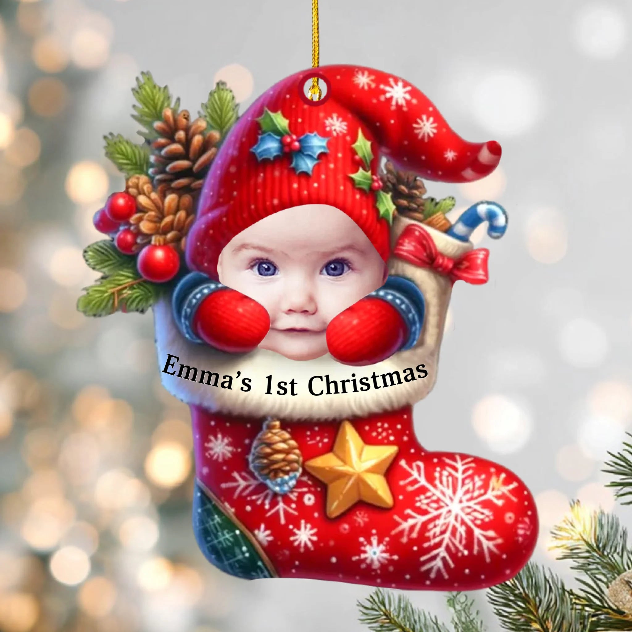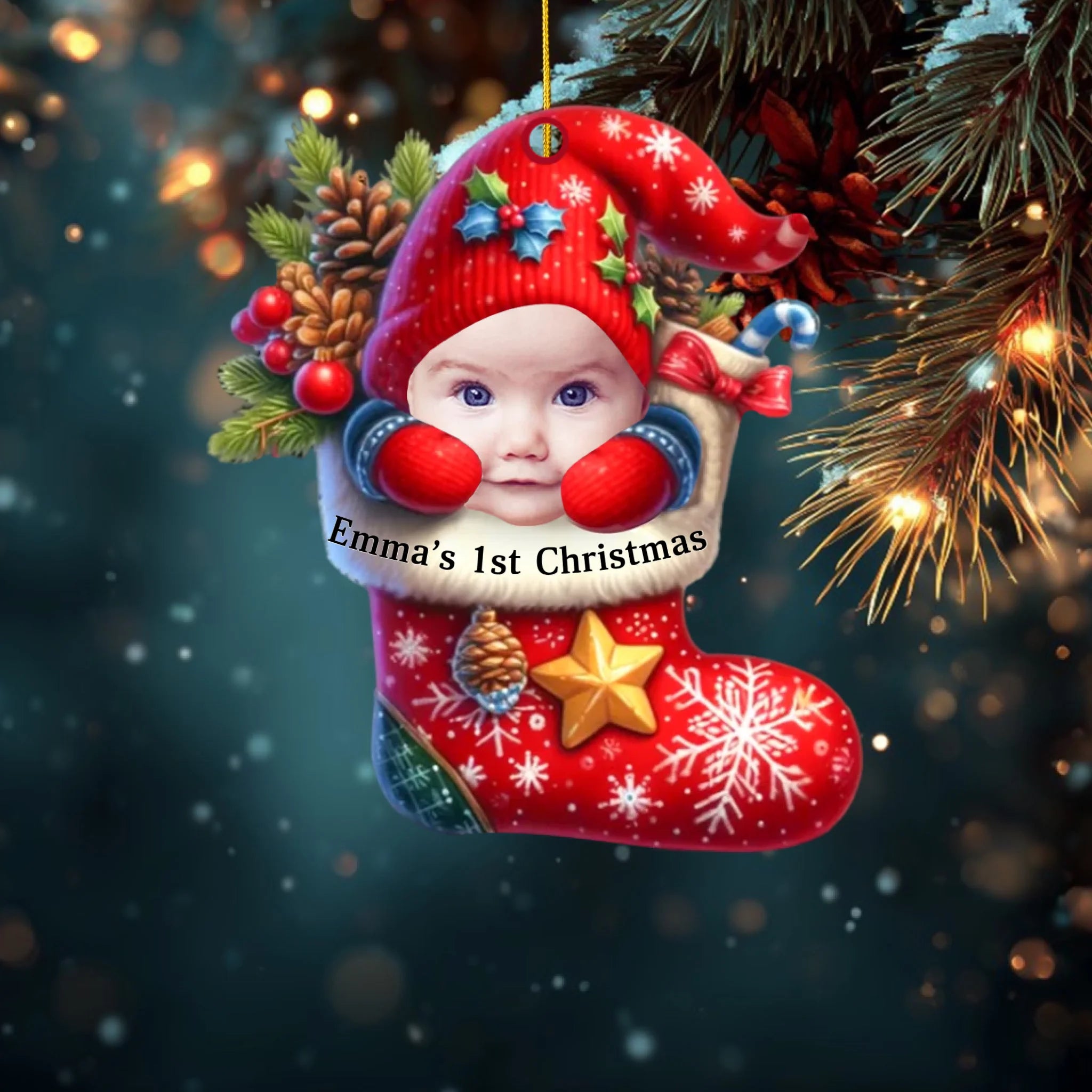 Ornement personnalisé pour le tout premier Noël de bébé – Souvenir chaussette en acrylique avec photo personnalisée, adorable décoration pour sapin de Noël nouveau-né 2025