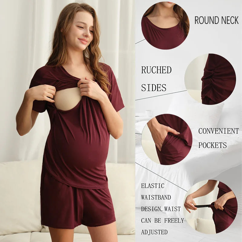 Women’s Maternity Postpartum Pajamas – Nursing Pjs Set with Shorts & Pants