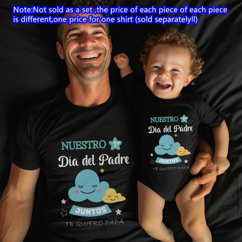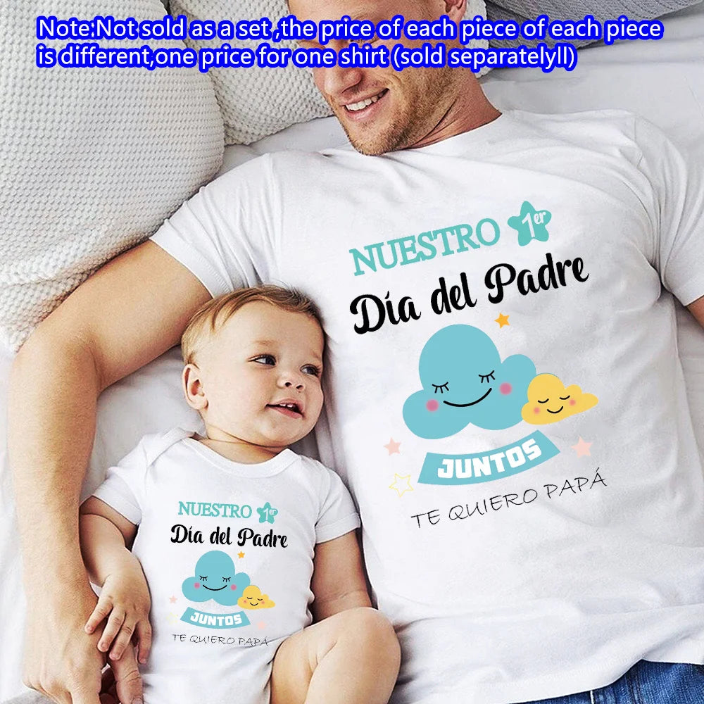 Our First Father's Day: Matching Dad and Baby Outfit is designed to celebrate the bond between father and child. The set includes a baby romper and a matching t-shirt for dad, both crafted from soft and breathable polyester. The short sleeves and lightweight material make these outfits perfect for summer activities and photo sessions. This unisex set ensures both dad and baby look adorable while staying comfortable.