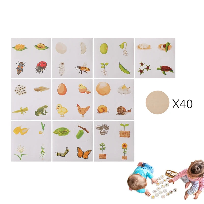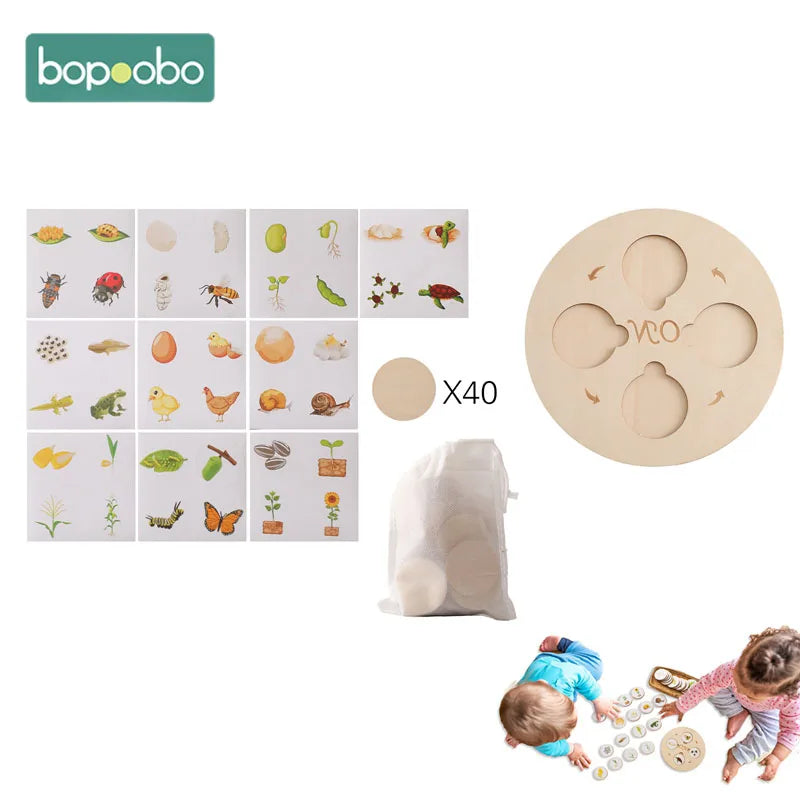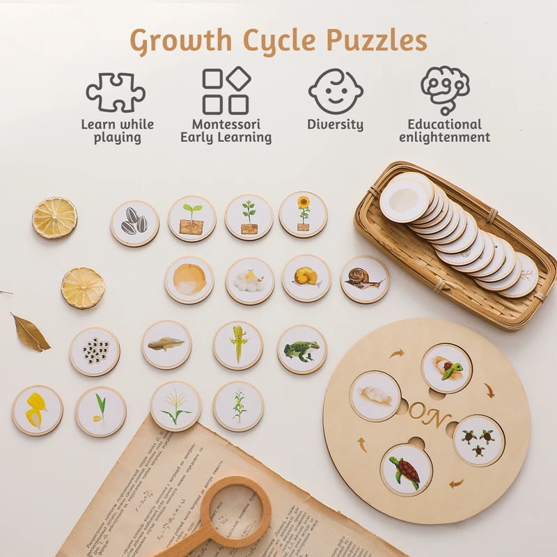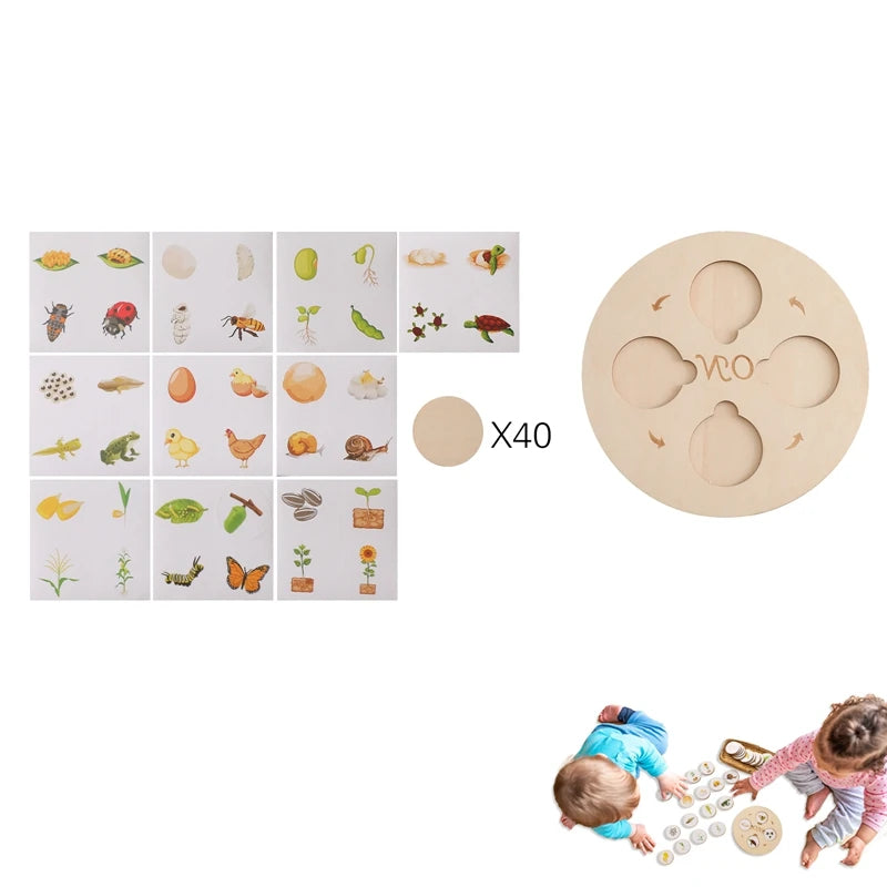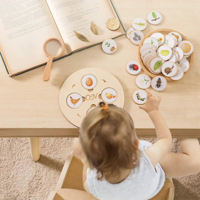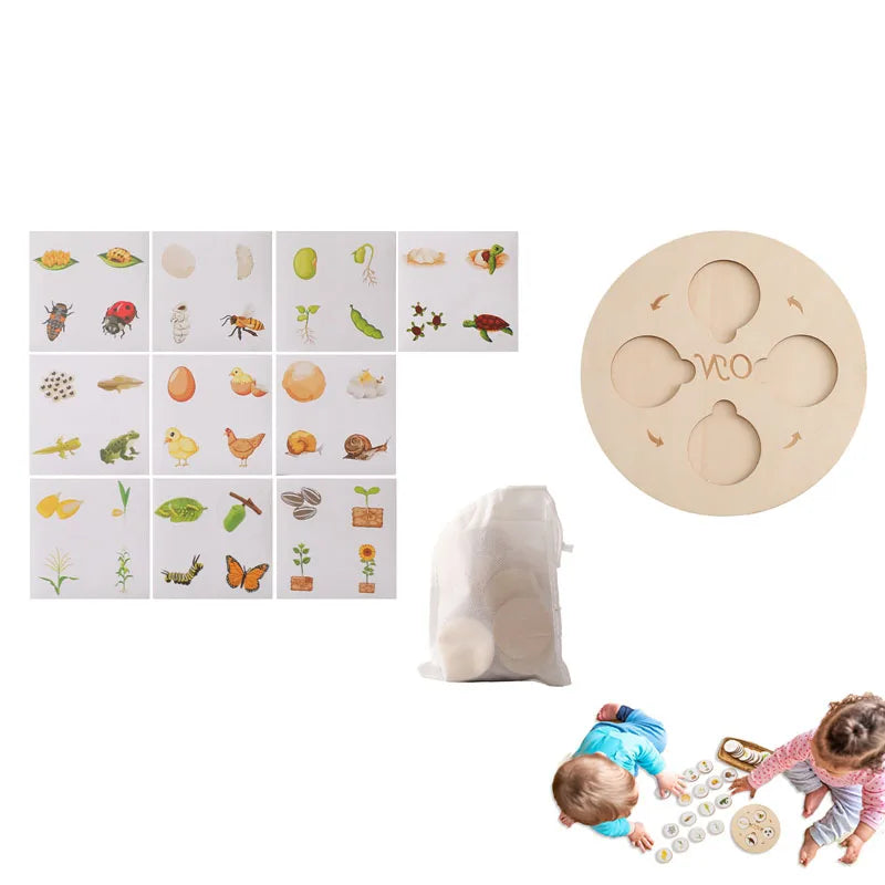 Help children explore the life cycles of animals and plants through interactive, hands-on wooden puzzles. Designed for kids aged 3–6, this Montessori-style toy enhances cognitive development, sequencing skills, and natural science understanding.