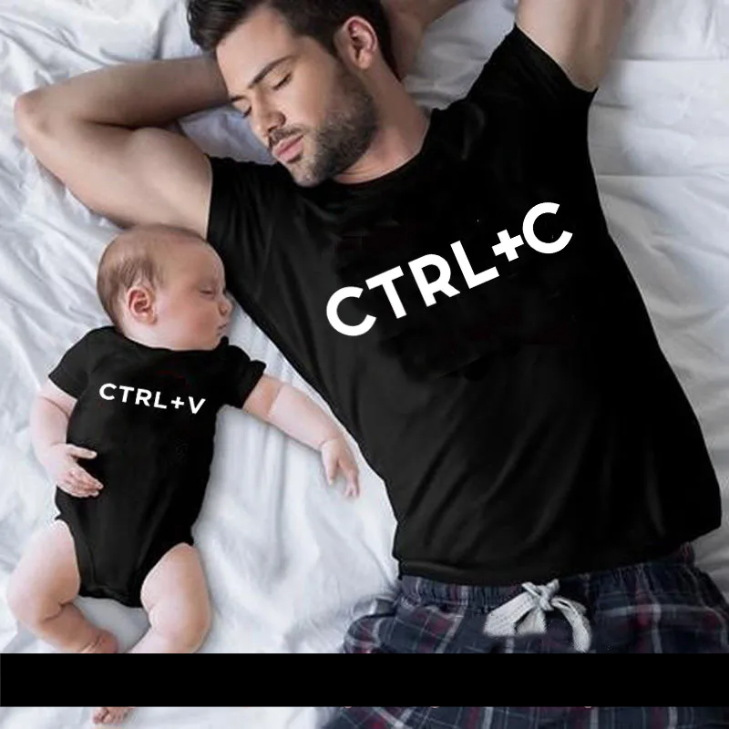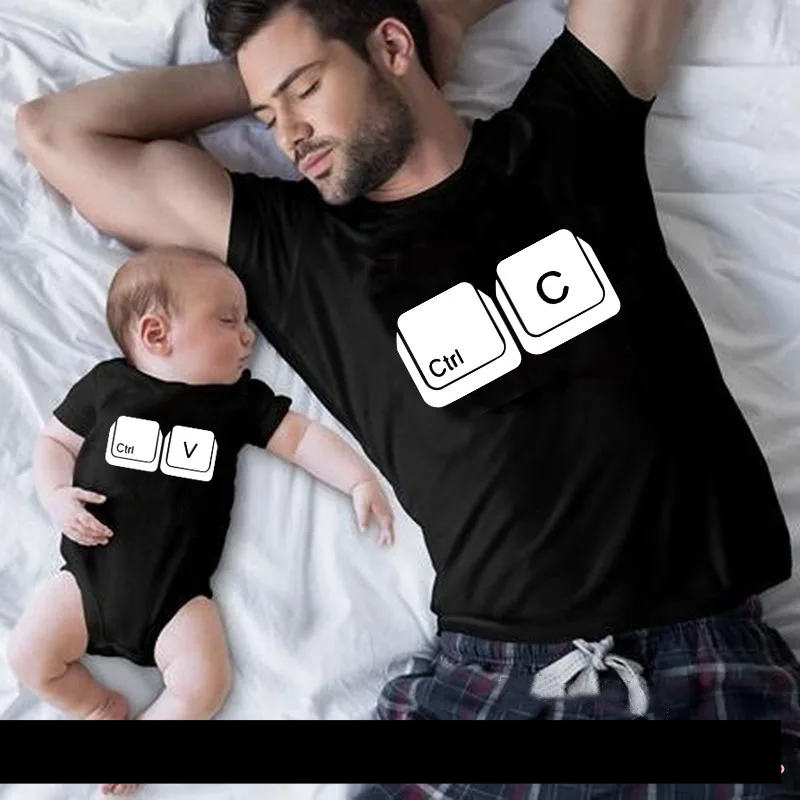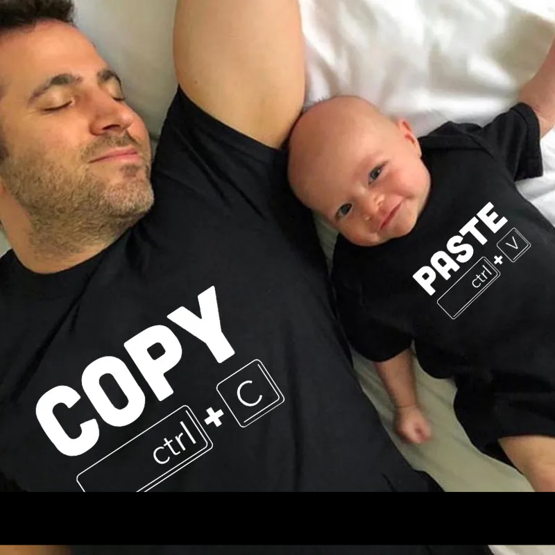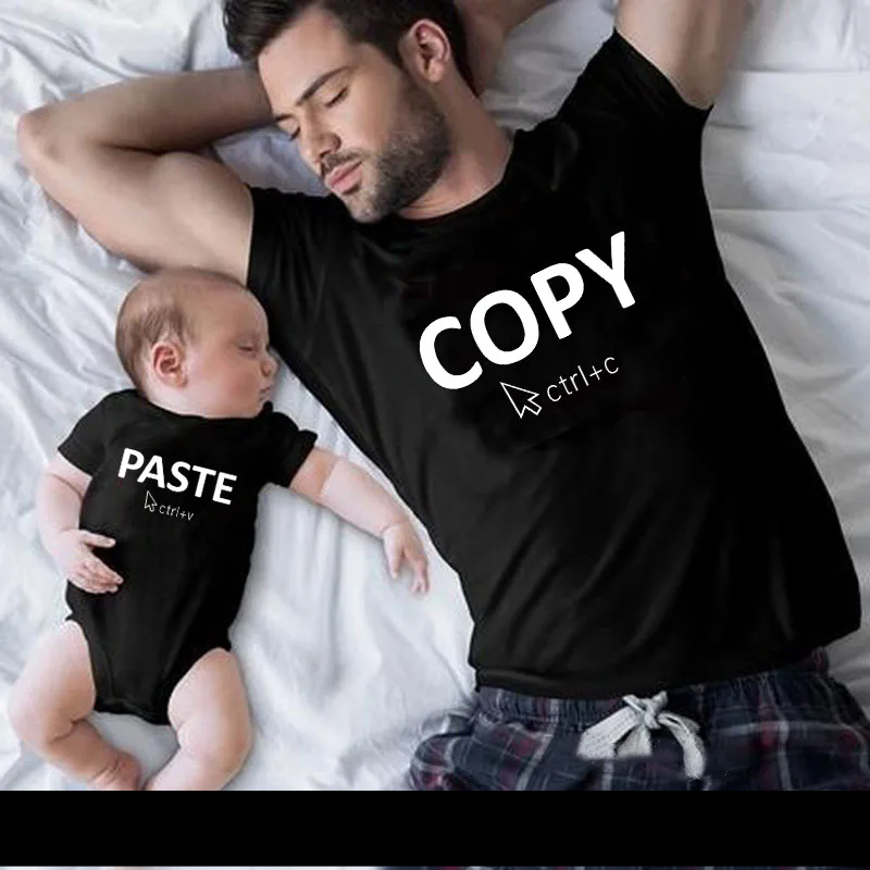 Our Copy Paste Family Matching Shirts are a delightful way to highlight the special bond between parents and children. Available in classic black, these shirts are made from high-quality cotton and polyester blend for adults and kids, while the baby bodysuits are made from 100% cotton for extra comfort.