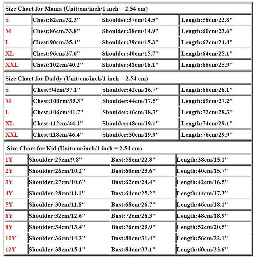- Size Variation: Ensure you check the size chart carefully to select the correct fit for each family member.