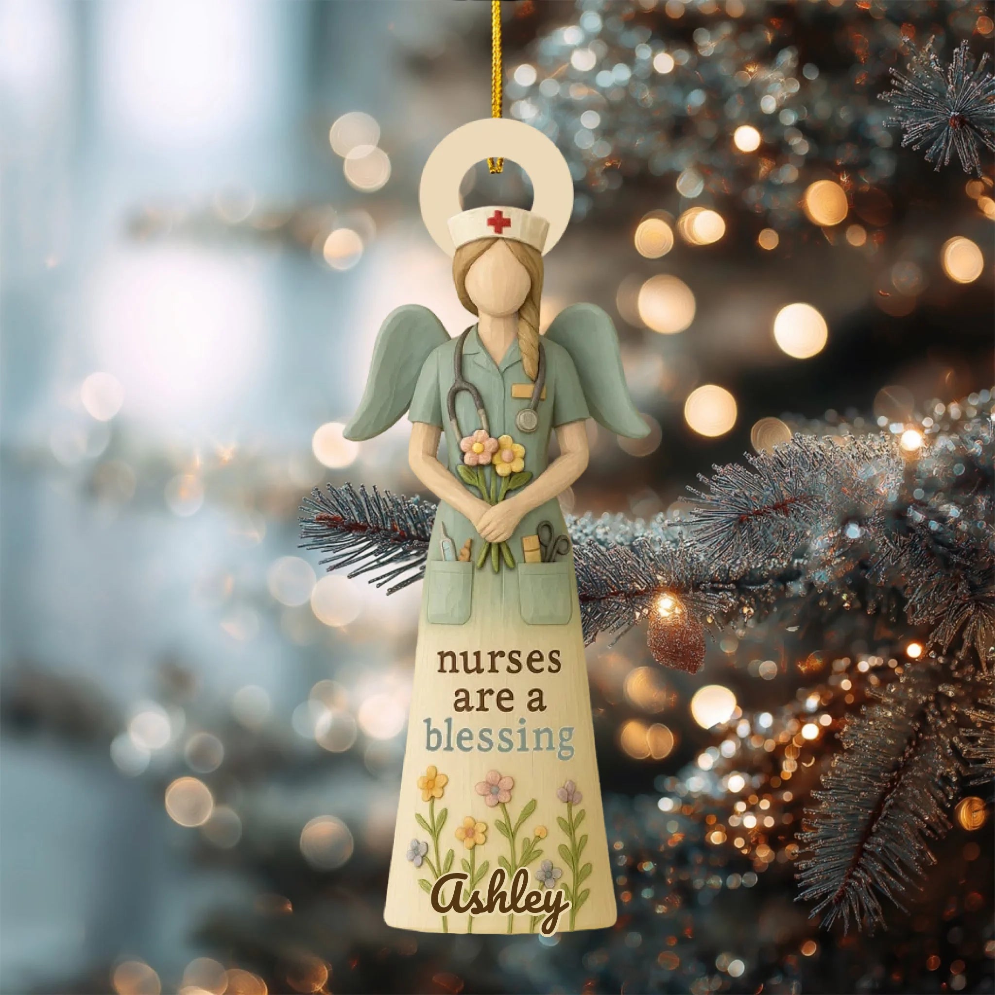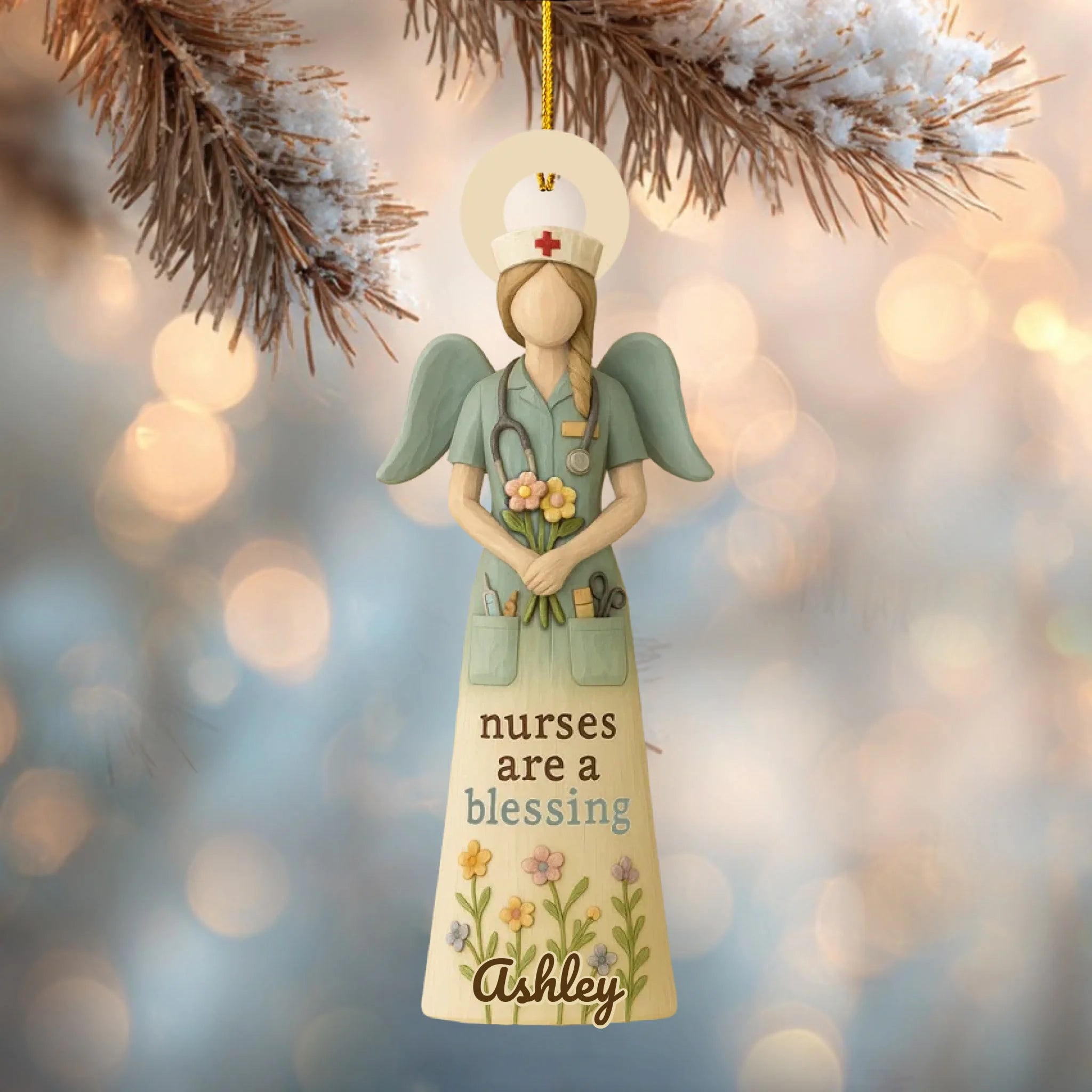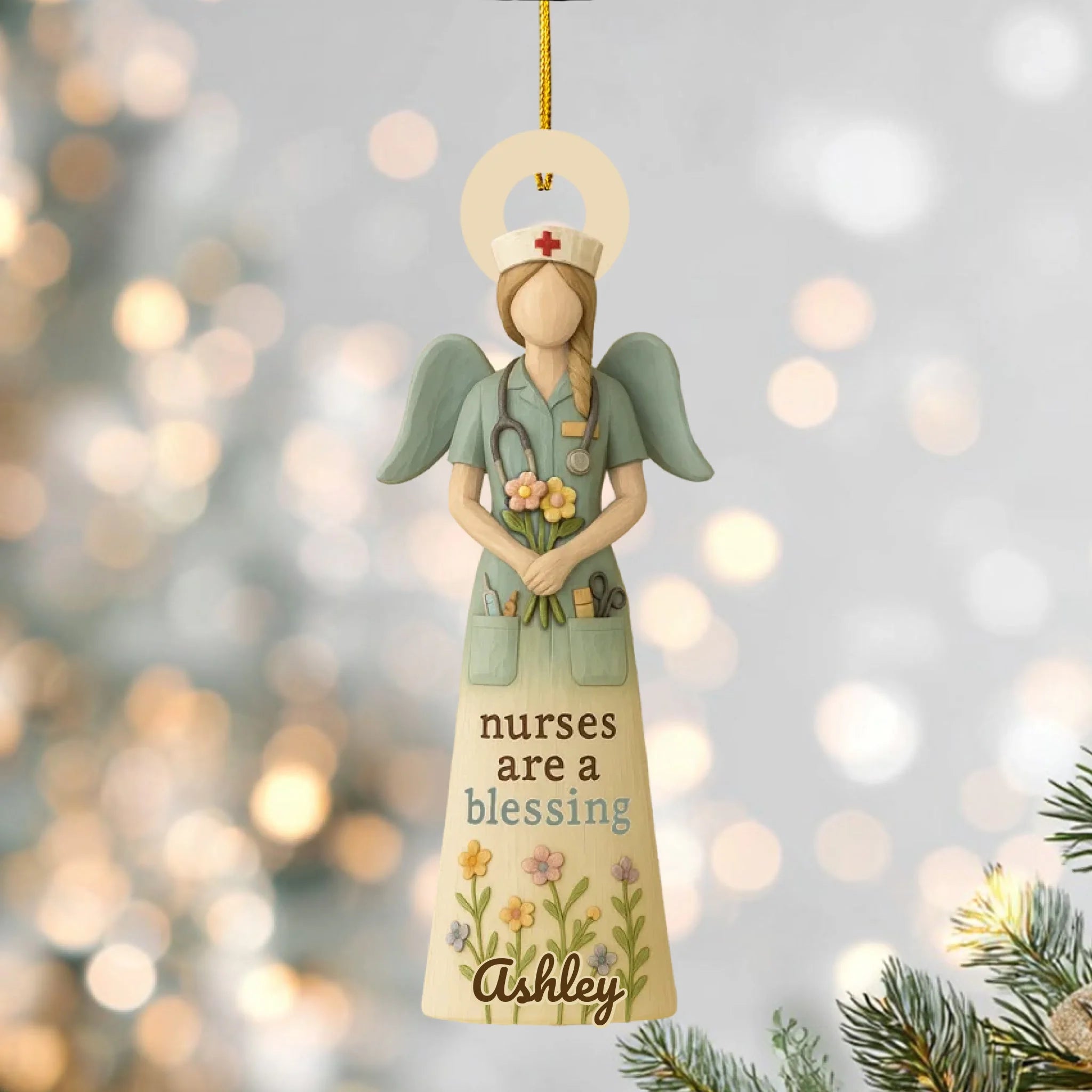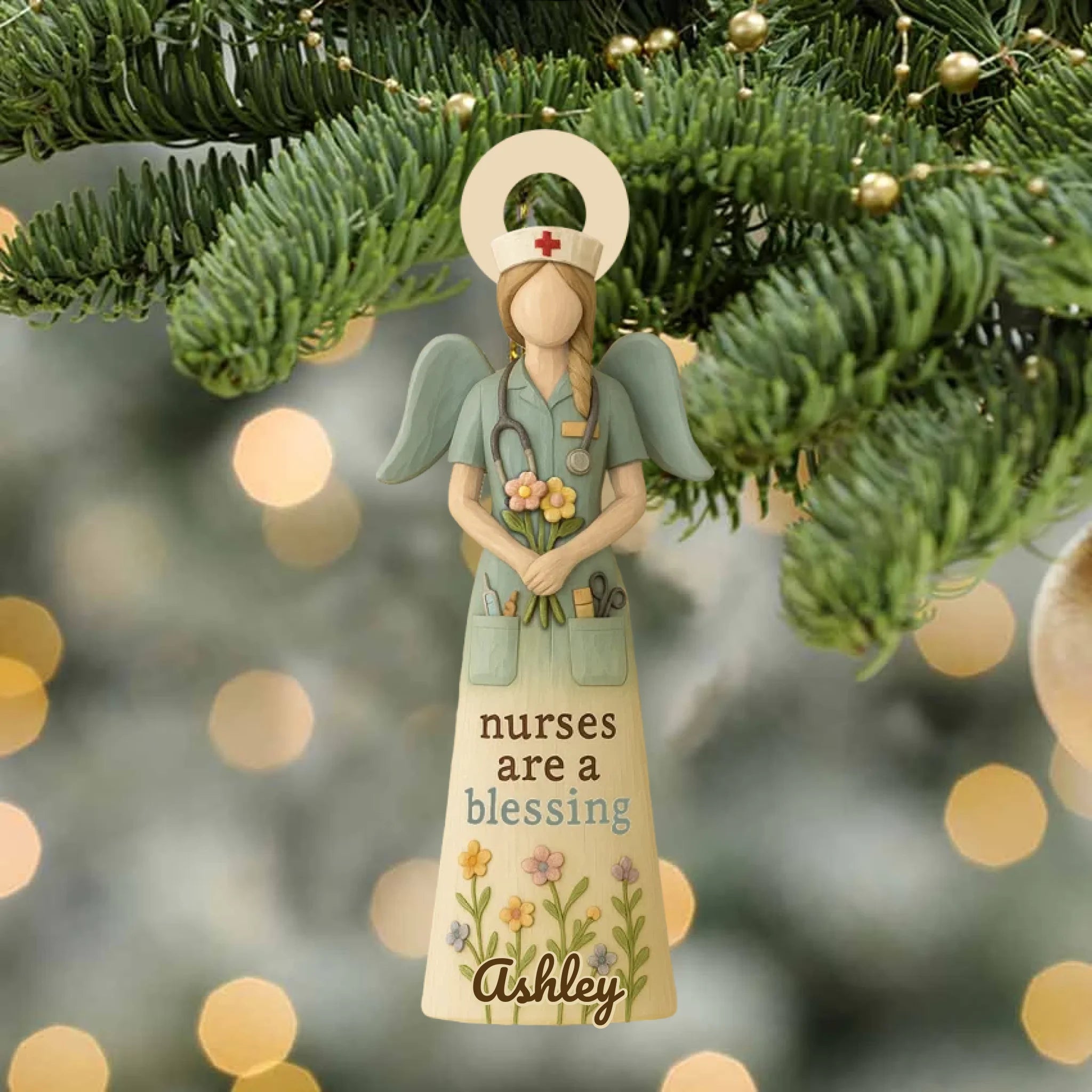 Beautifully designed with an angel nurse holding flowers, this ornament can be customized with your chosen name and skin tone, making it a one-of-a-kind gift that shows appreciation and love.