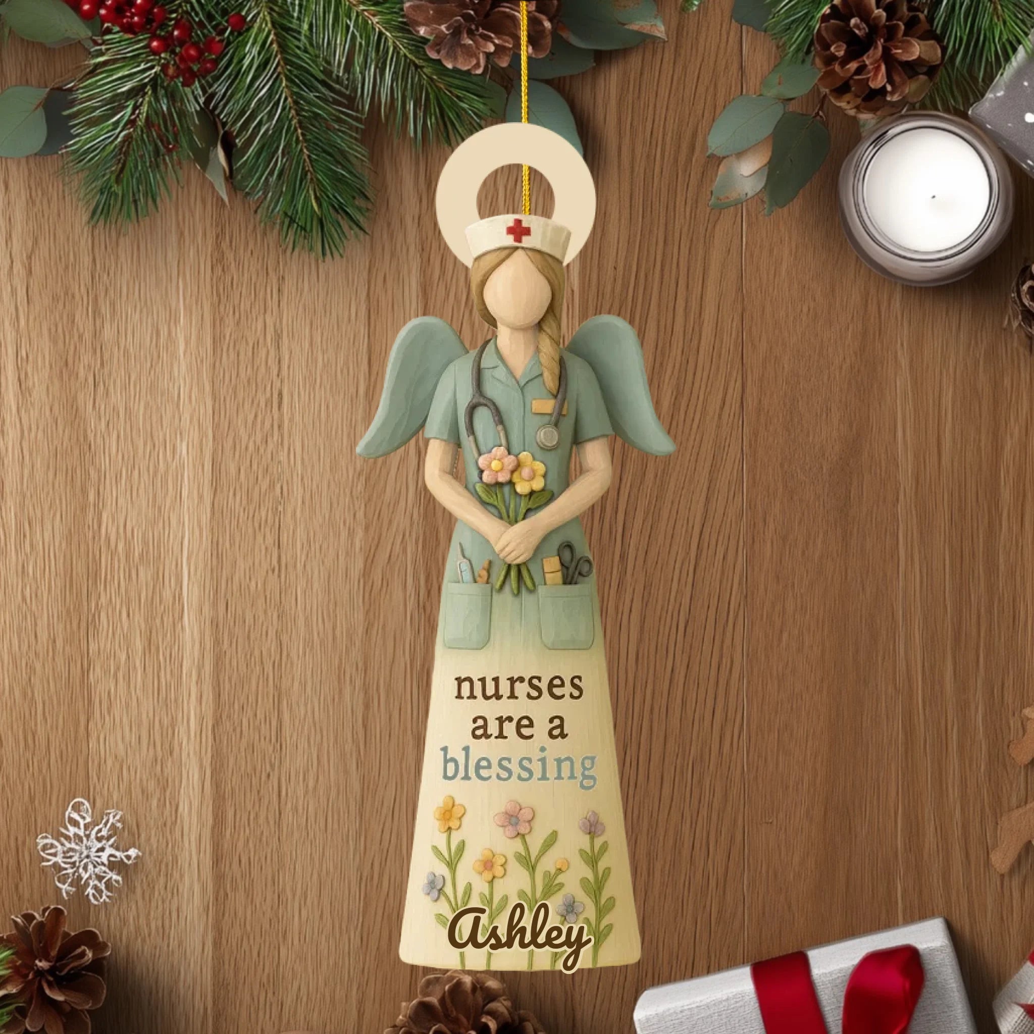 Personalized “Nurses Are a Blessing” Wooden Ornament – Custom Name & Skin Tone