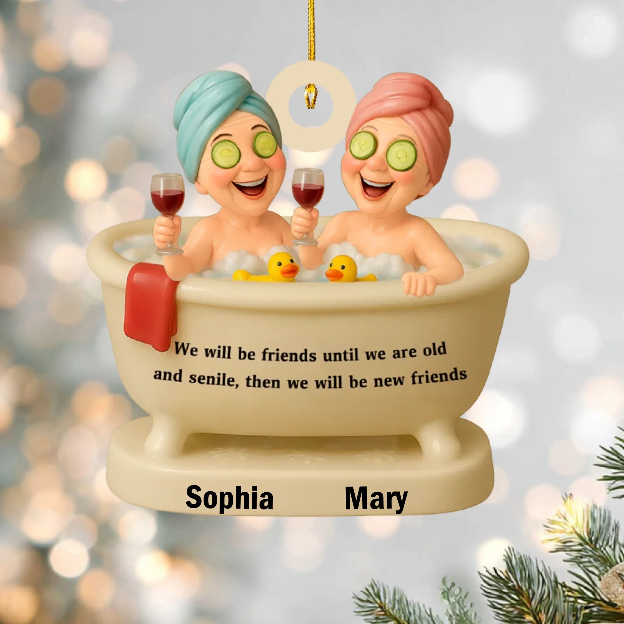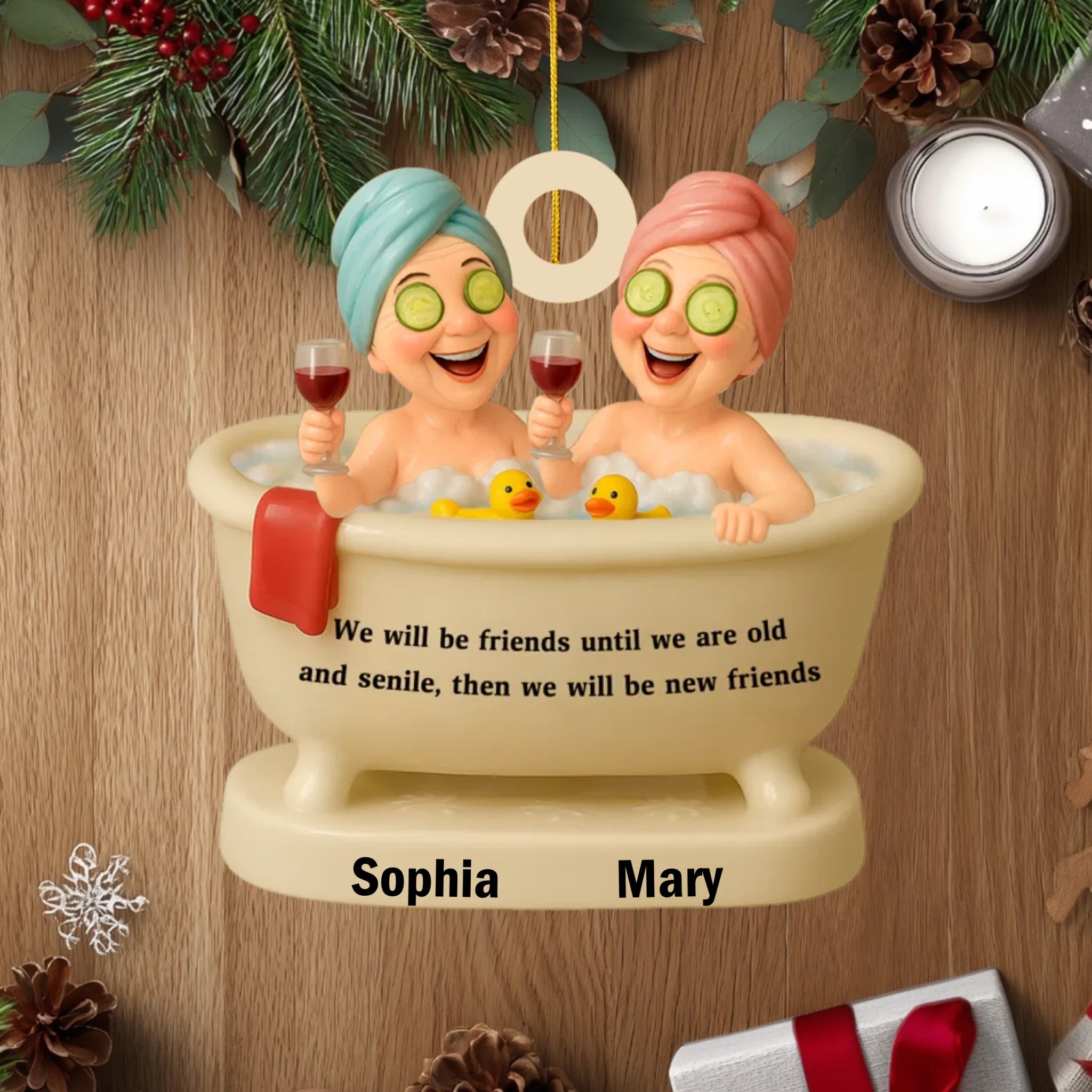 Ornamento de Spa de Baño Personalizado para Mejores Amigas – Divertido Regalo Personalizado para Mujeres, Recuerdo de Amistad para Navidad, Cumpleaños o Decoración de Fiestas
