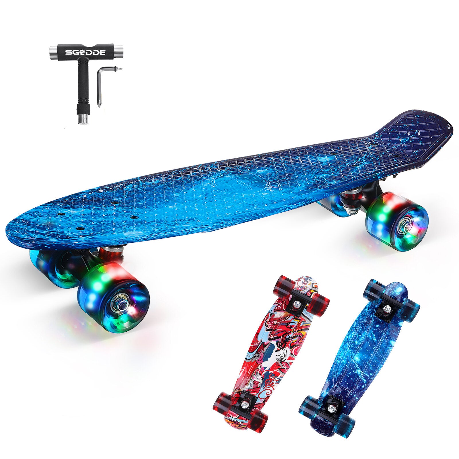 - 【Massives Material】Unser 22-Zoll-Skateboard besteht aus hochwertigem ABS-Kunststoff, leistungsstarker Druckguss-Aluminium-Dreieckshalterung, bietet hervorragenden Halt & Verschleißfestigkeit und ist rutschfest.