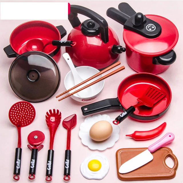 Umfangreiches Kochset: Von Töpfen und Pfannen bis hin zu Besteck und Küchenutensilien bietet das Spielset eine umfassende Auswahl an Küchenwerkzeugen und bildet eine echte Kochumgebung nach.