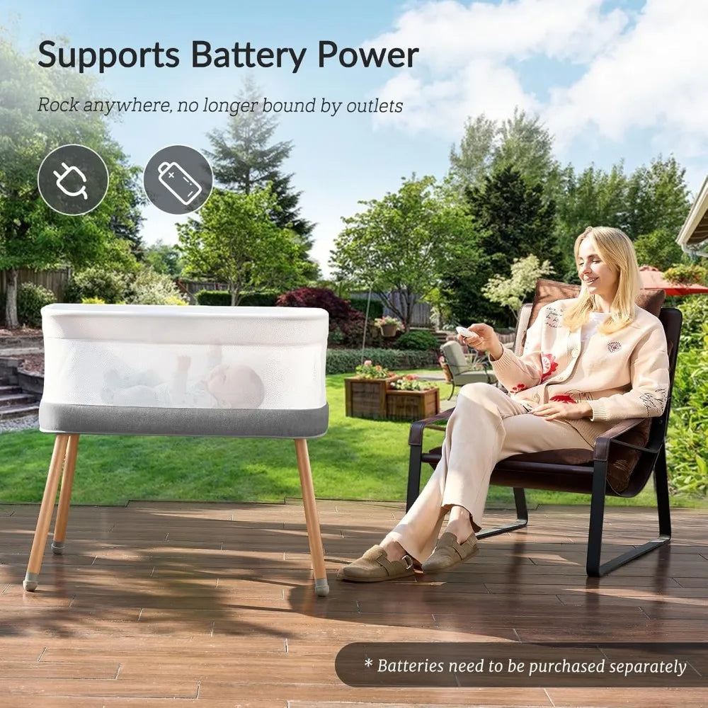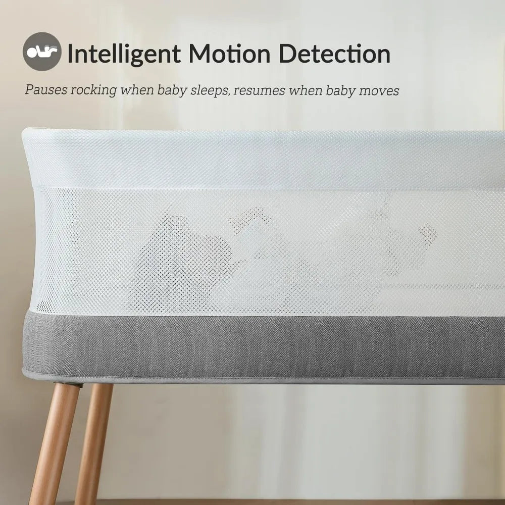 Electric Rocking Bassinet with Smart Motion Detection – 3-Speed Auto Sway, 8 Soothing Sounds, Bedside Sleeper for Newborns, Grey