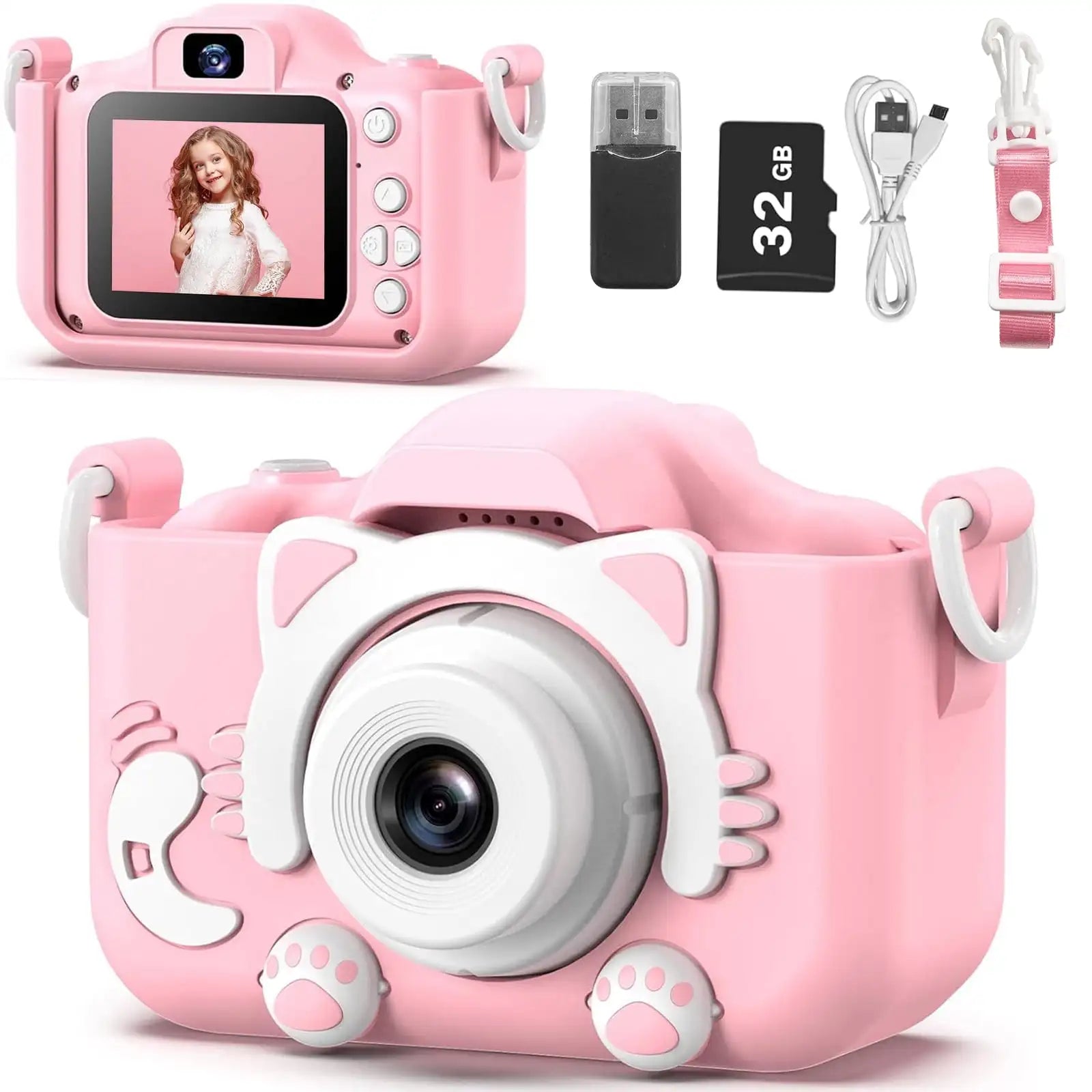 1080P HD-Digitalkamera für Kinder mit Silikonhülle – Kompaktes Videokamera-Spielzeug mit 32-GB-Karte für Jungen und Mädchen im Alter von 3–12 Jahren