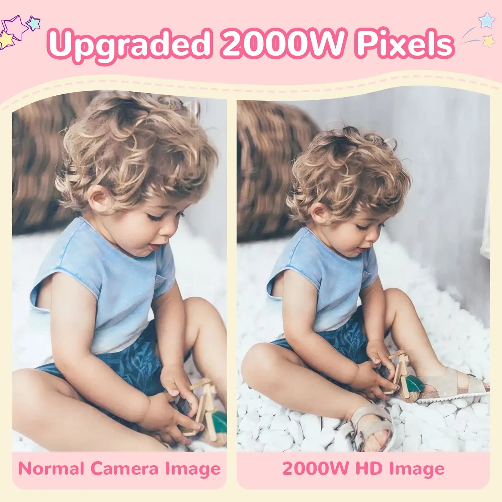 Halten Sie jedes Abenteuer mit verbesserter 20-MP-Fotoauflösung und 1080P HD-Videoqualität fest. Die Kamera unterstützt Serienaufnahmen und -wiedergabe, sodass Kinder die Welt aus ihrer eigenen Perspektive einfangen können.