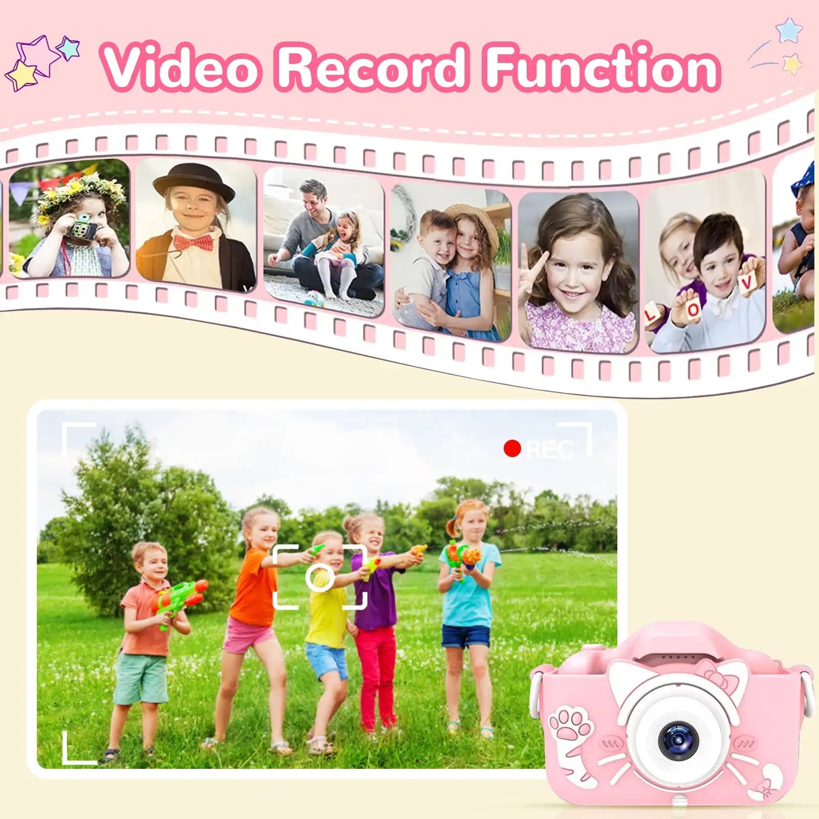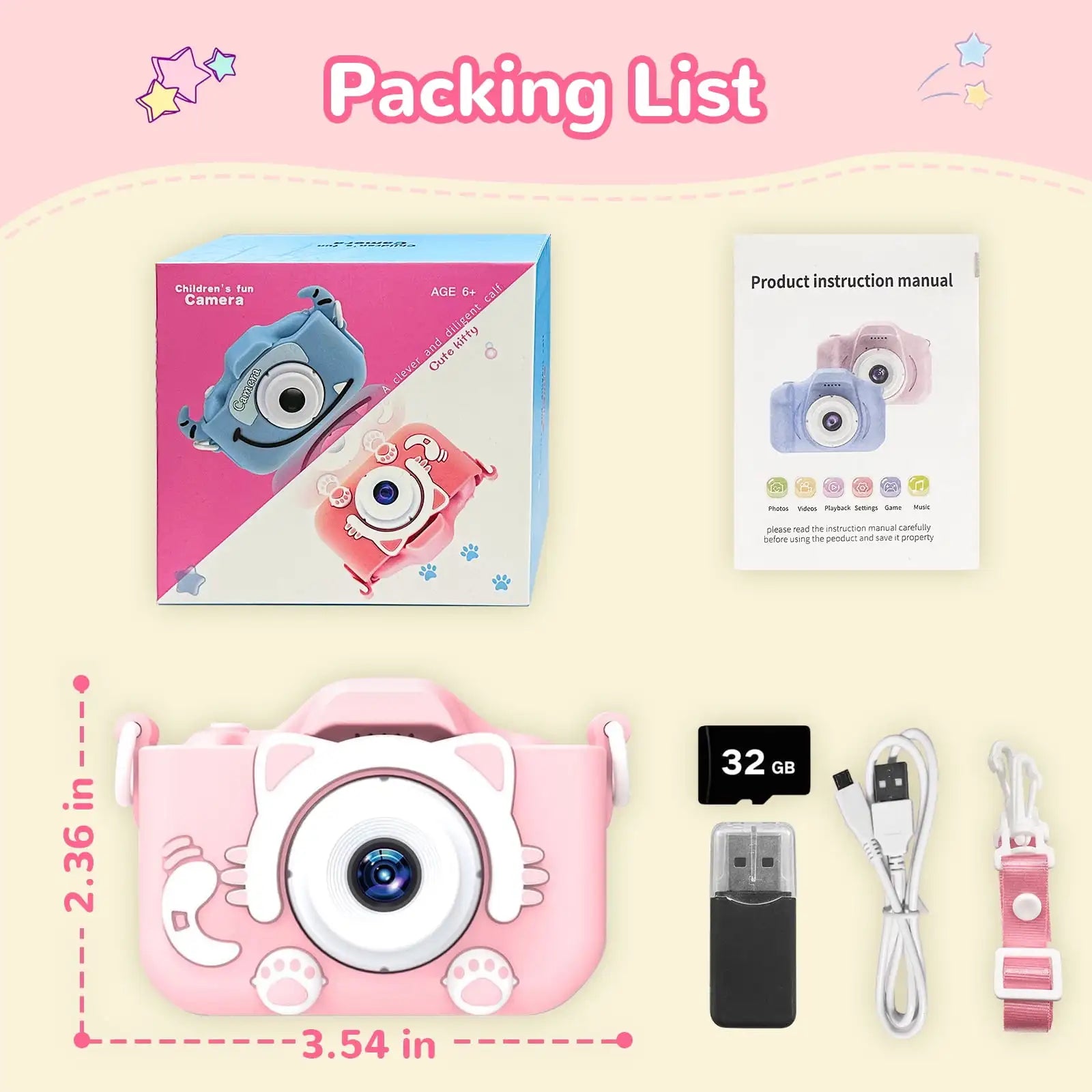 Ermöglichen Sie Ihrem Kind die Freude am Fotografieren mit dieser kompakten und leichten Digitalkamera, die speziell für Kinder entwickelt wurde. Mit einem 2,0-Zoll-IPS-Display, zwei HD-Objektiven vorne und hinten sowie lustigen Funktionen wie Spielen und Filtern ist diese Spielzeugkamera das perfekte erste Gerät für junge Kreative.