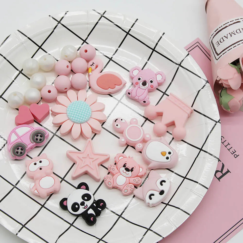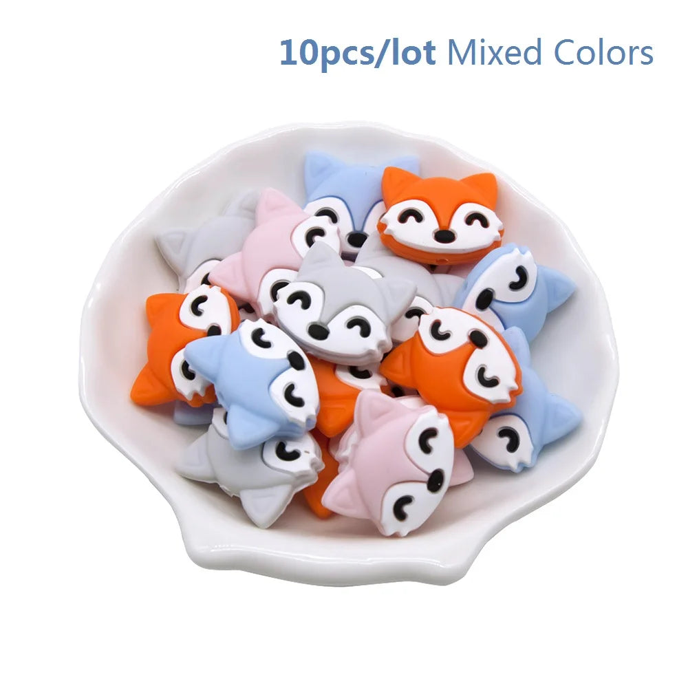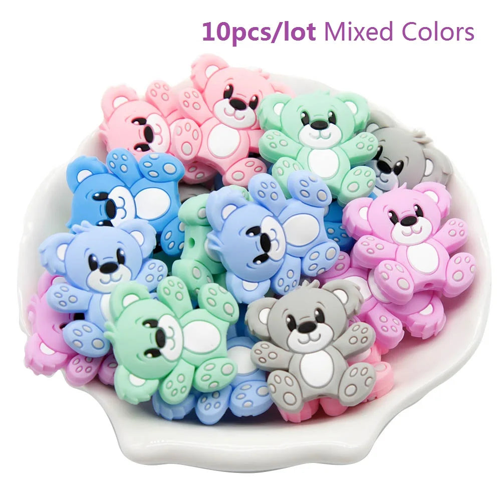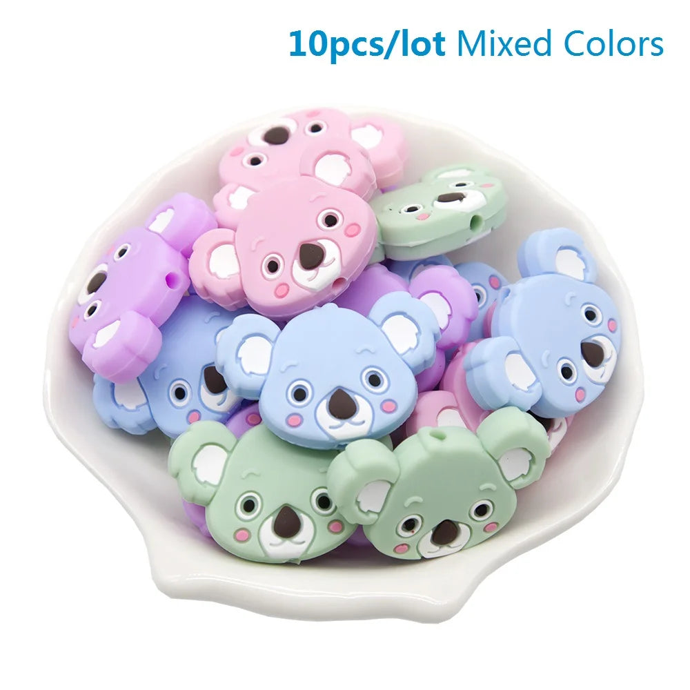 10pcs/set Cute Silicone Baby Teether Beads – Cartoon DIY Crafts for Pacifier Clips & Chewable Accessories