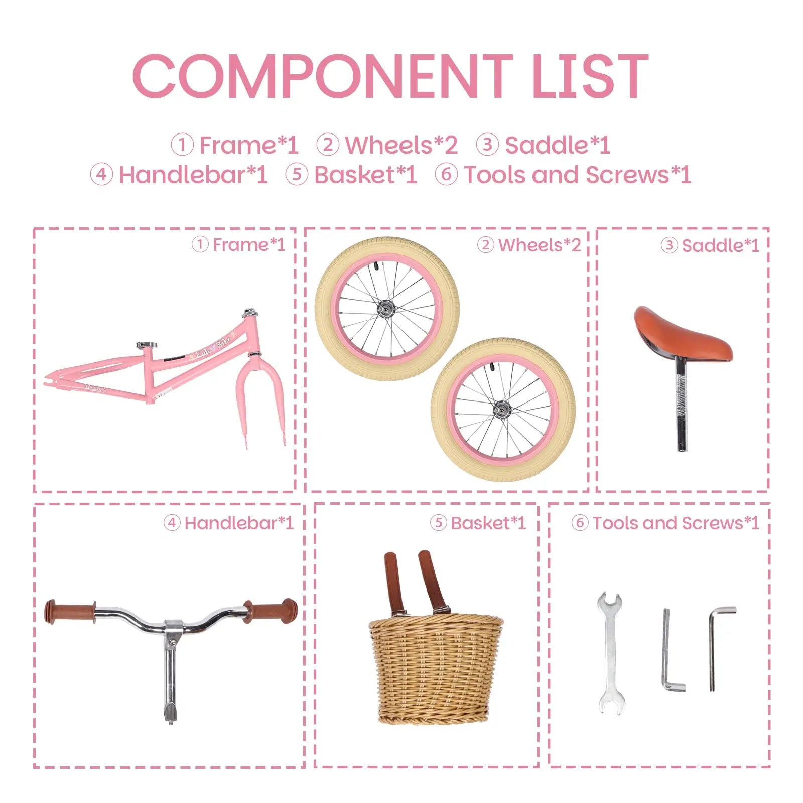Removable Woven Basket: Equipped with a charming detachable wicker basket, perfect for boys and girls to carry their toys, snacks, flowers, or fruits, adding extra joy to every ride.