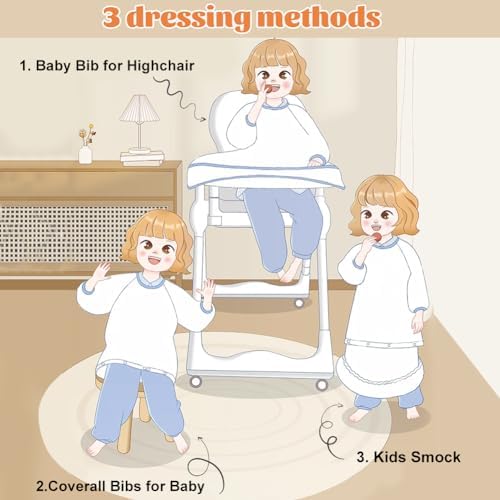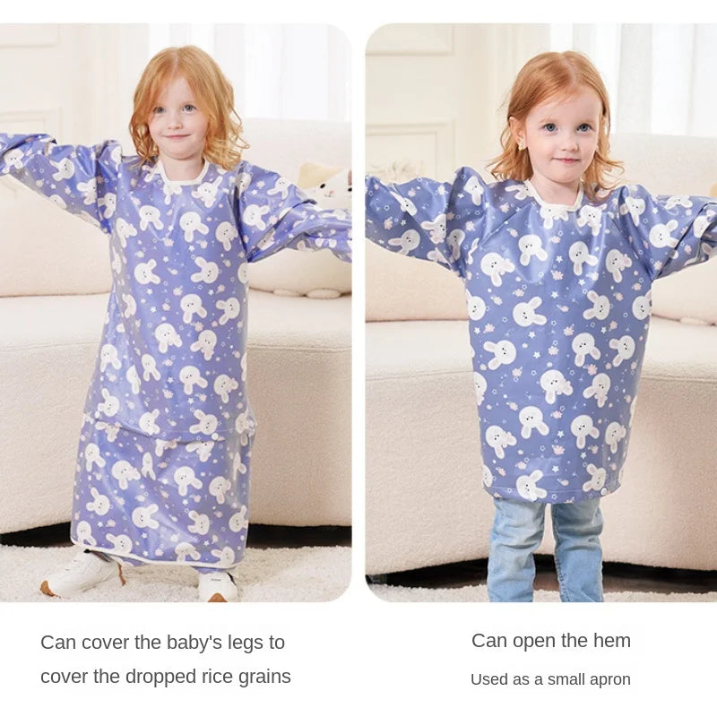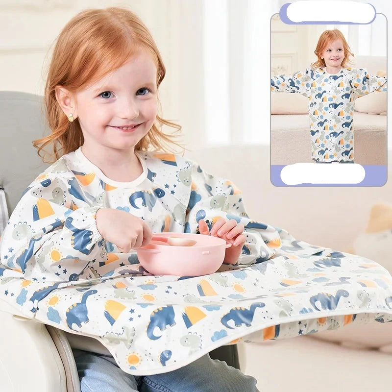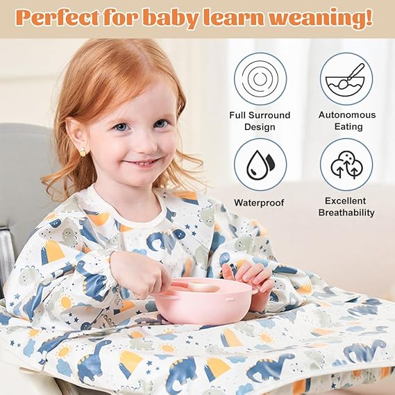 - Maximaler Schmutzschutz: Die langen Ärmel und der großzügige Hochstuhlbezug schützen Kleidung, Ärmel und den Hochstuhl vor Essensspritzern.