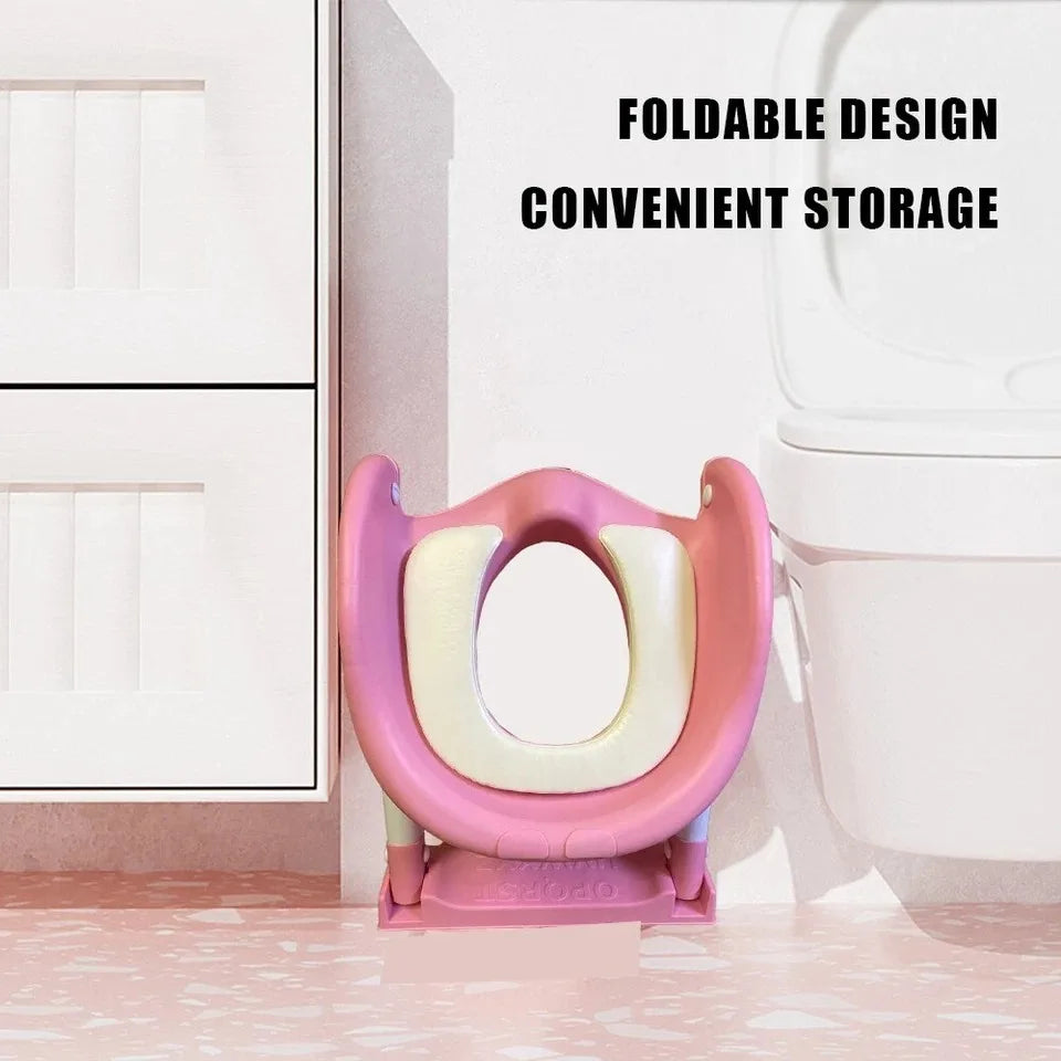 2-in-1 Kids Potty Training Seat with Steps - Foldable, Adjustable Ladder, Soft Cushion, Splash Guard