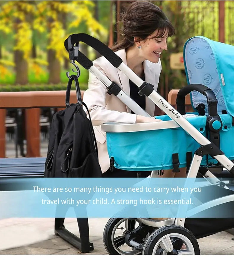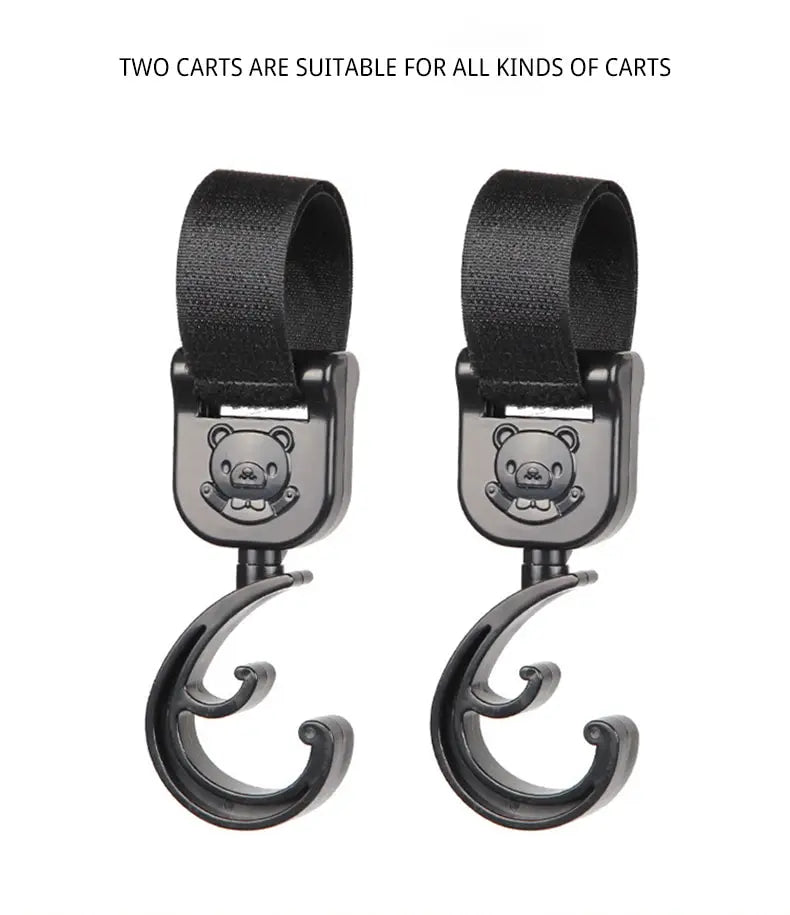 360-Degree Rotation: With a 360-degree rotation capability, our stroller hook offers easy access to the items hung on it from any angle.