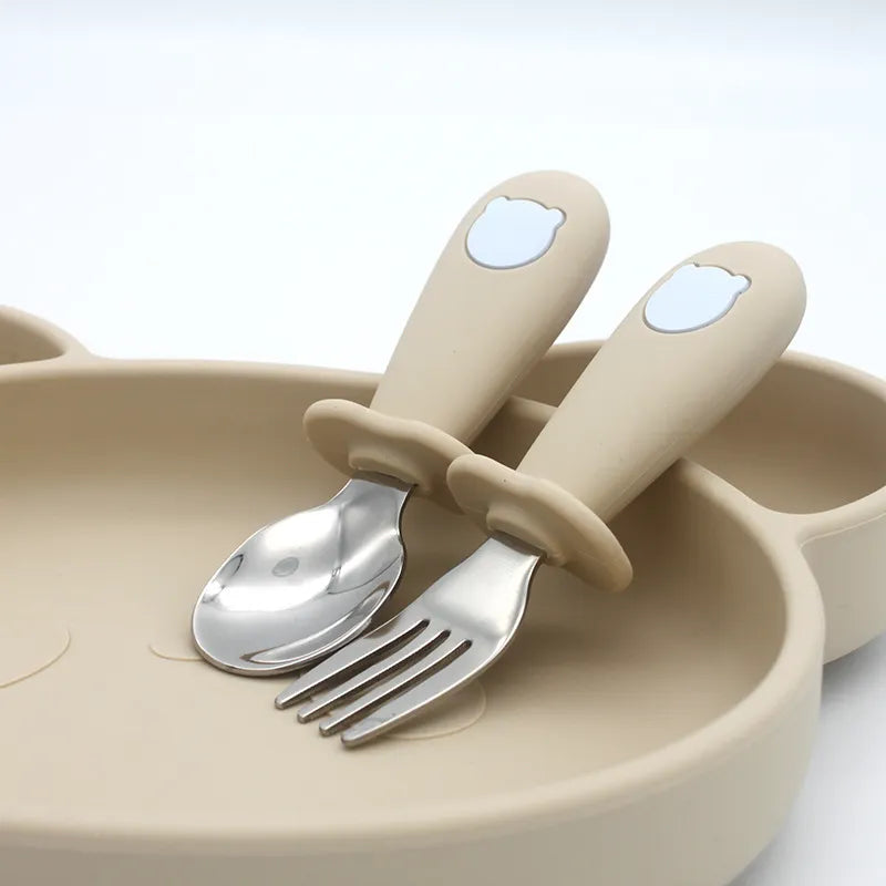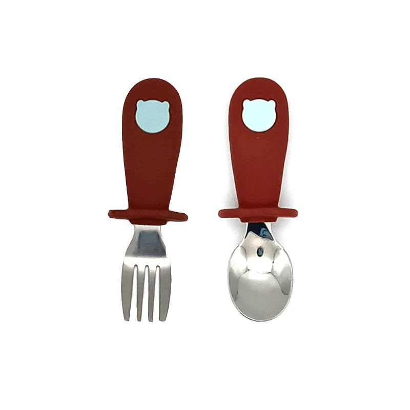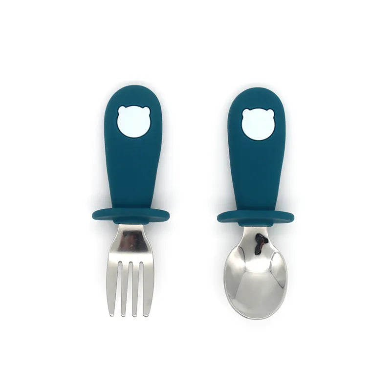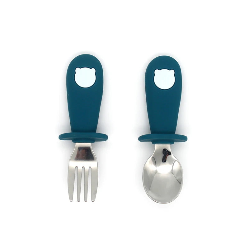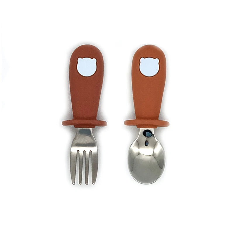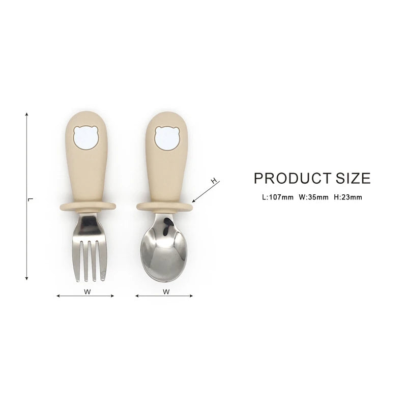 2 Teile/satz Baby Silikon Geschirr-Edelstahl Löffel und Gabel Für Kleinkinder