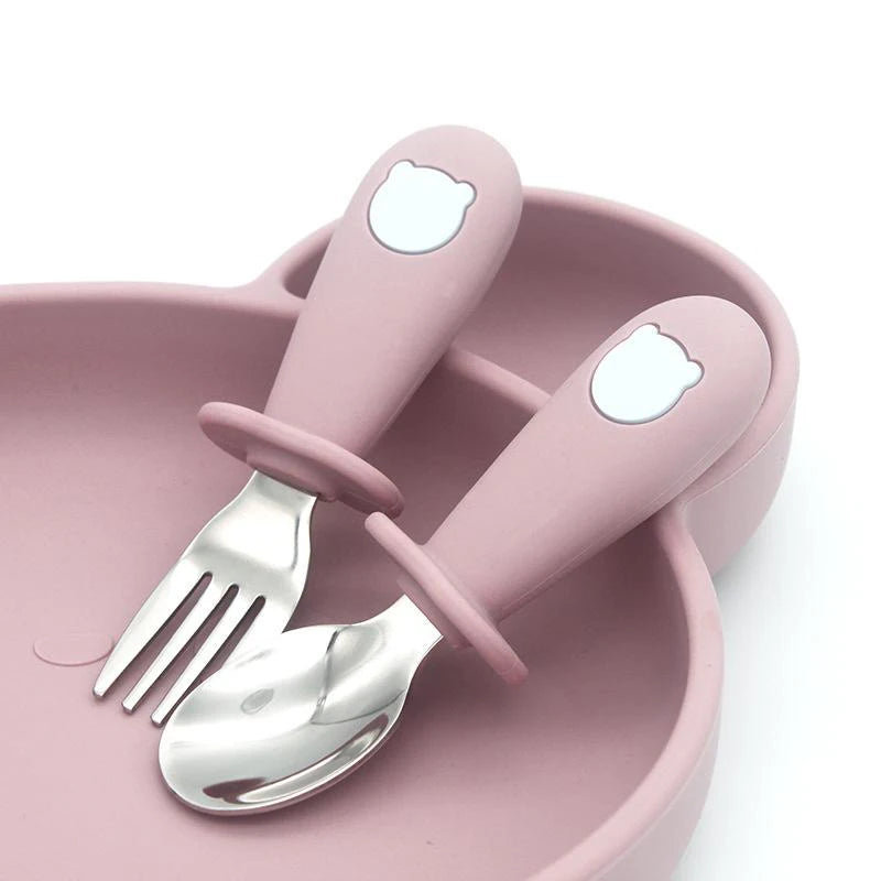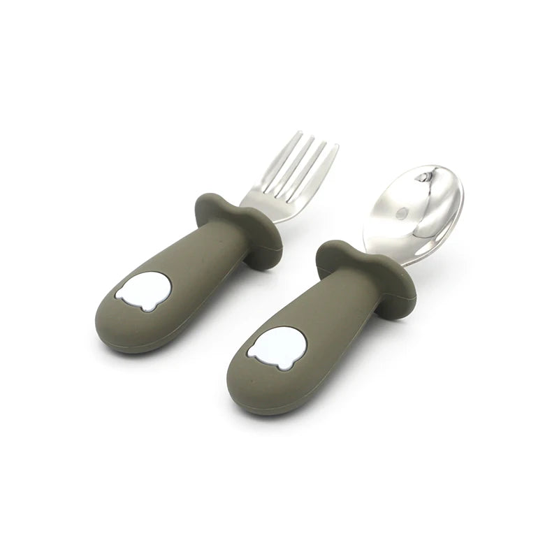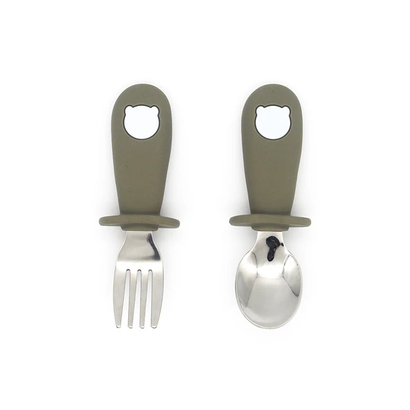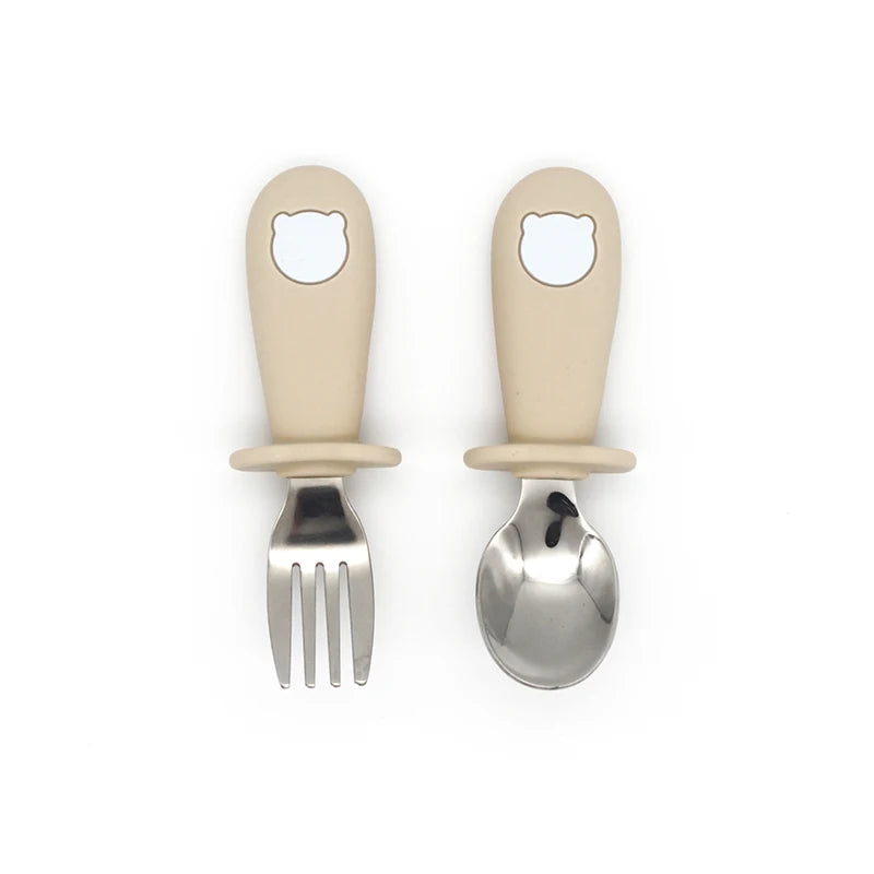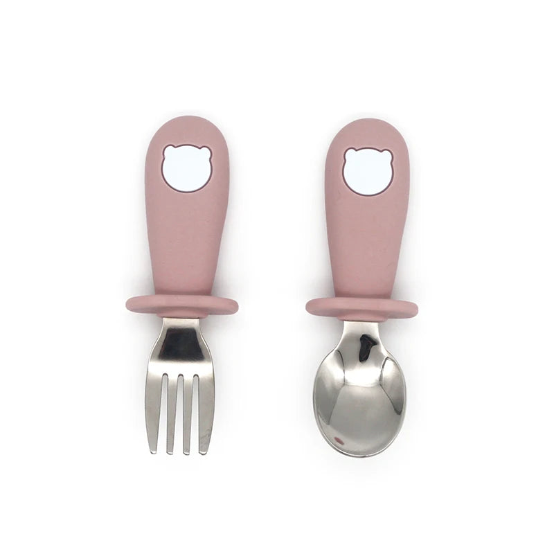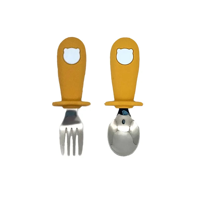 2 Teile/satz Baby Silikon Geschirr-Edelstahl Löffel und Gabel Für Kleinkinder