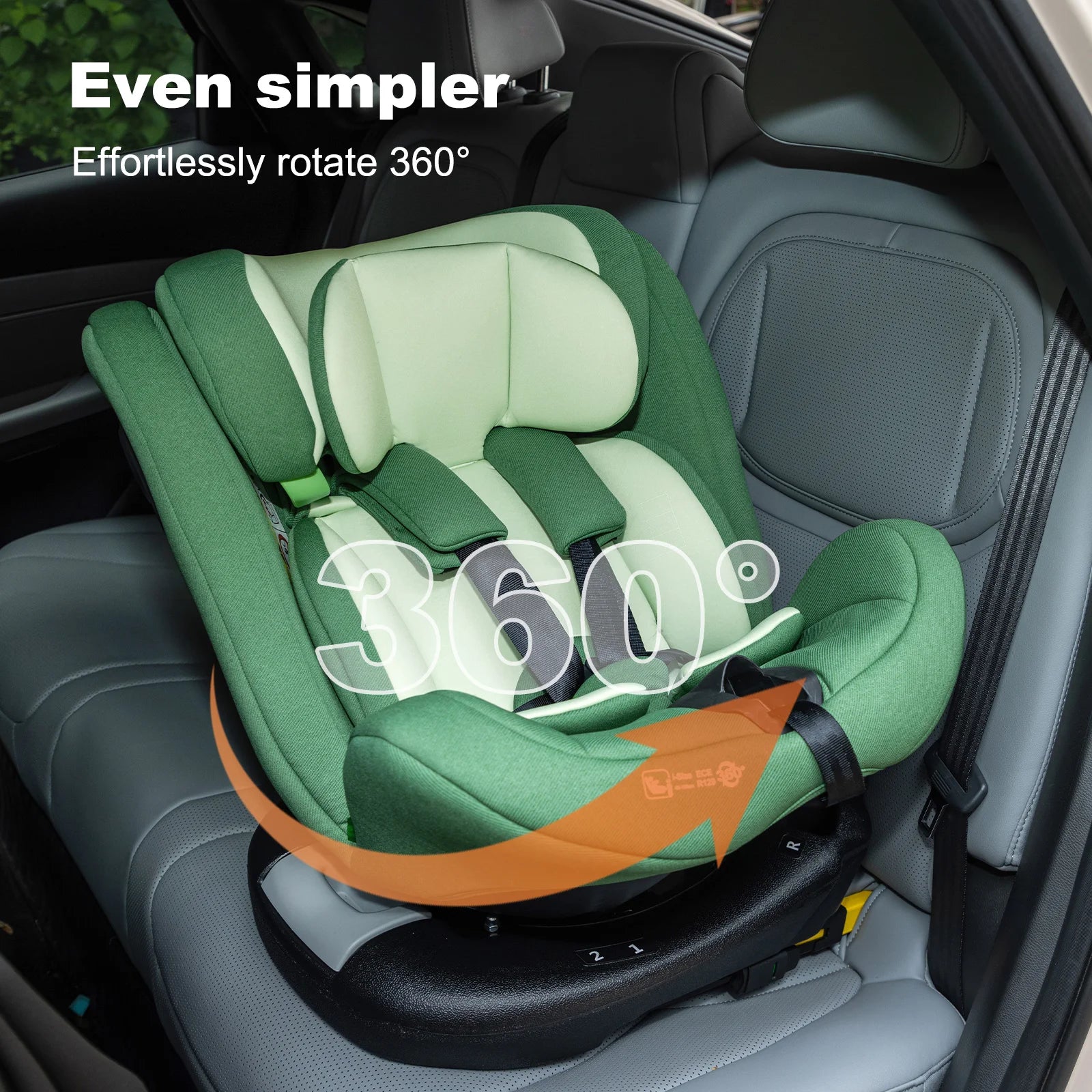 This all-in-one convertible car seat is the last car seat your child will ever need. It is designed to cover the entire childhood span (0–12 Years) and features a crucial 360° swivel base for effortless access and extreme safety. It meets the most stringent European safety standards, giving parents maximum peace of mind.