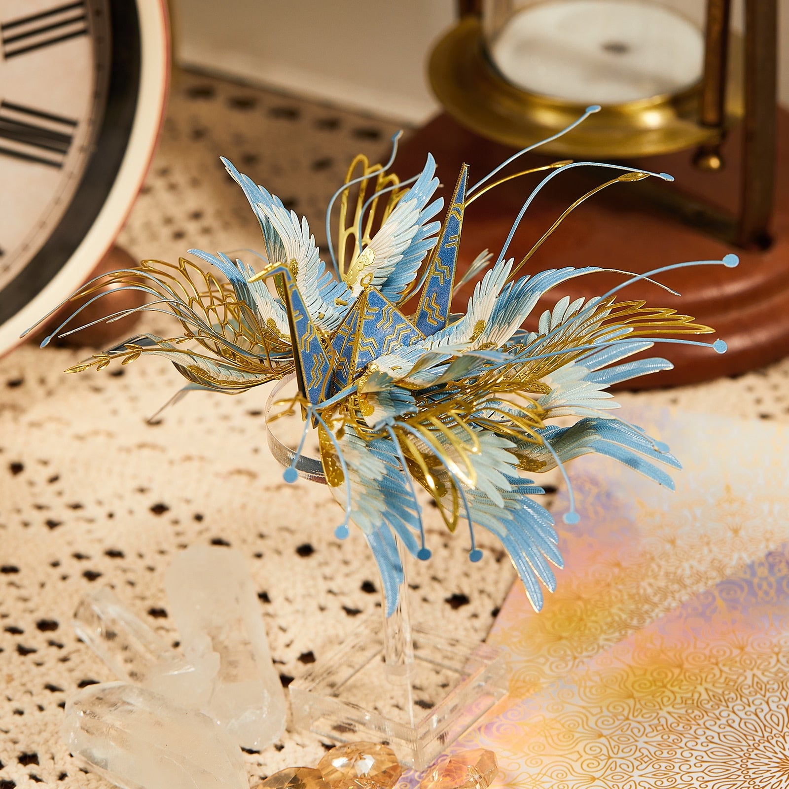 Das 3D-Metallmodell „Wassermann-Kranich“ simuliert die Farben des Sternzeichens Wassermann sehr präzise. In der Astrologie gilt Wassermann als aktives (positives) Sternbild.