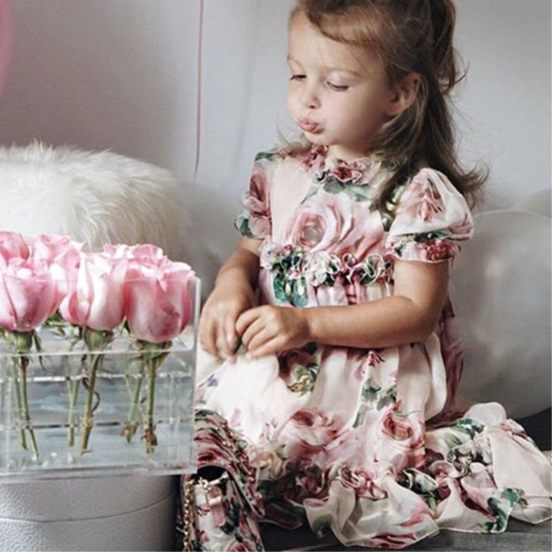 Dieses 3D-Kleid mit Blumendruck und Puffärmeln für kleine Prinzessinnen ist einzigartig gestaltet mit Rüschen am Hals und an den Saumkanten sowie flächendeckendem Rosenmuster in 3D-Optik, was für einen klassisch femininen Look sorgt. Ein modisches, lässiges Kleid für eine kleine Prinzessin mit dem süßesten Lächeln.