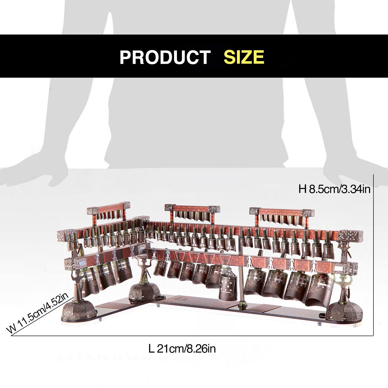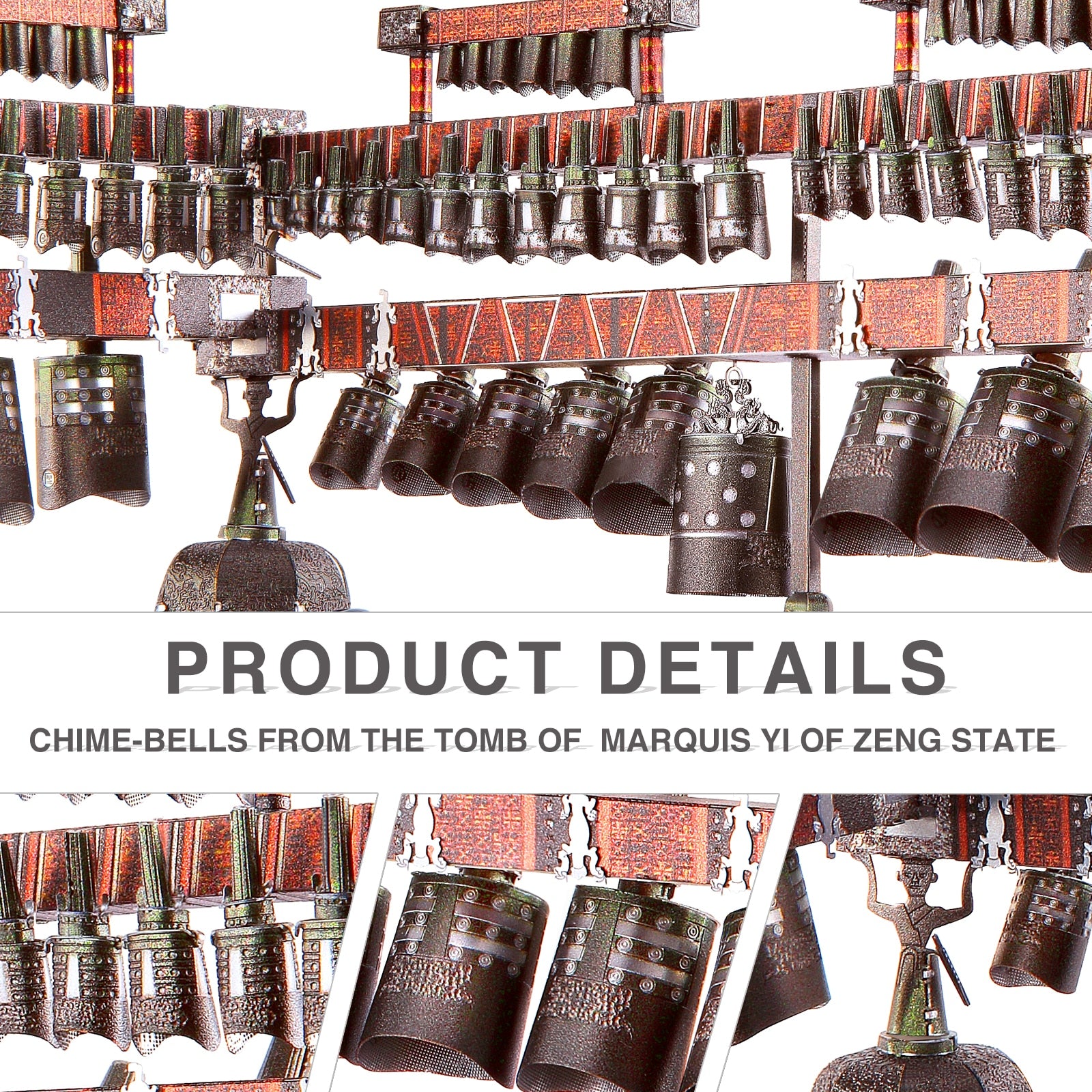 CHIME BELLS, listed as China’s First Grade Cultural Relic, is an ancient percussion instrument made of bronze invented during the Western Zhou Dynasty and flourished during the Spring and Autumn Period and the Warring States Period until the Qin and Han Dynasties. This metal assembly model reinterprets this historic treasure with its classic romantic aftertaste.