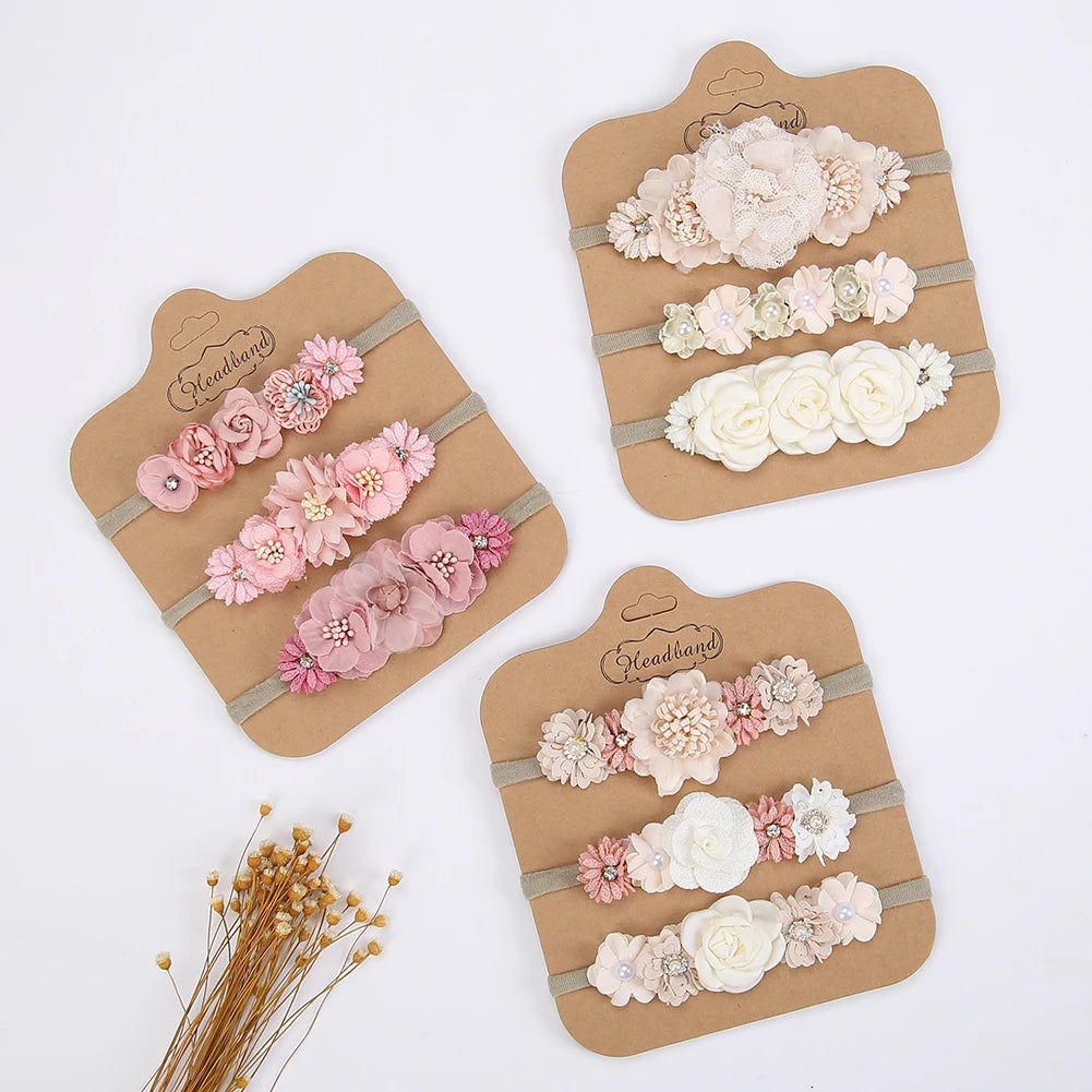 3 Teile/satz Künstliche Blume Baby Stirnbänder Mädchen Strass Nylon Haar Bands Kinder Mini Ins Fotografie Requisiten Kinder Mode Headwear