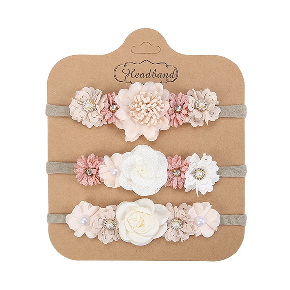 Jedes Set enthält 3 wunderschön gearbeitete Stirnbänder, verziert mit Stoffblumen, Perlen und funkelnden Strasssteinen für einen weichen, eleganten Look.