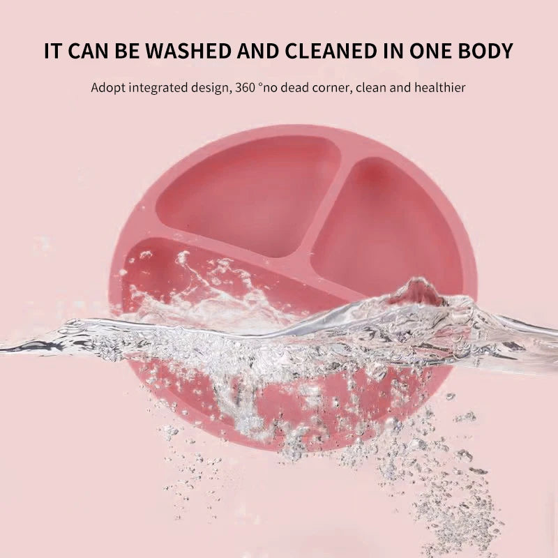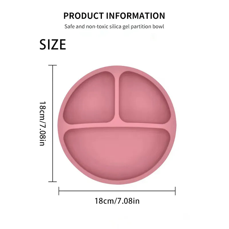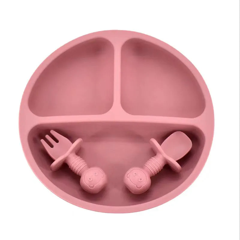 3-teiliges Silikon-Babyset mit geteiltem Teller, Löffel und Gabel