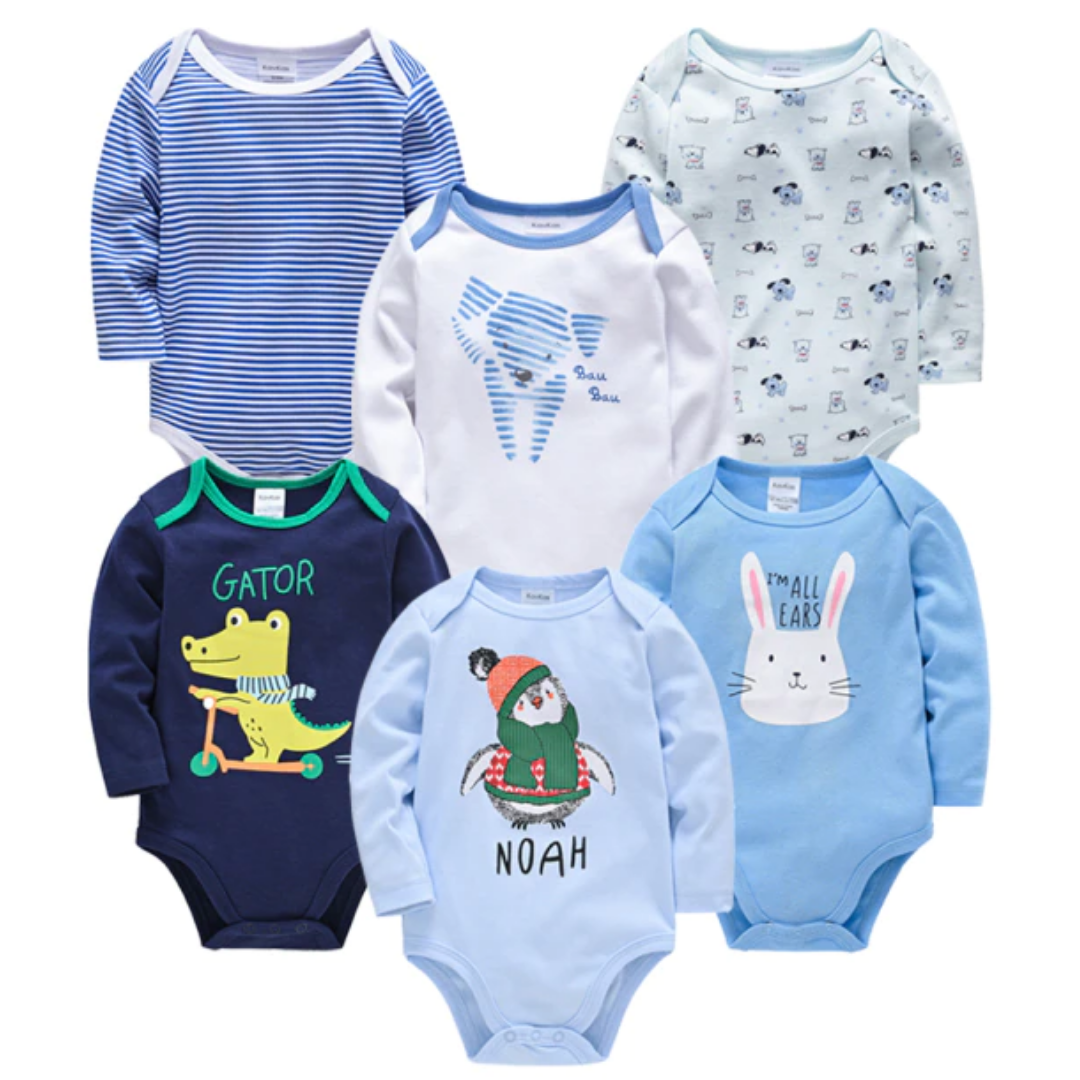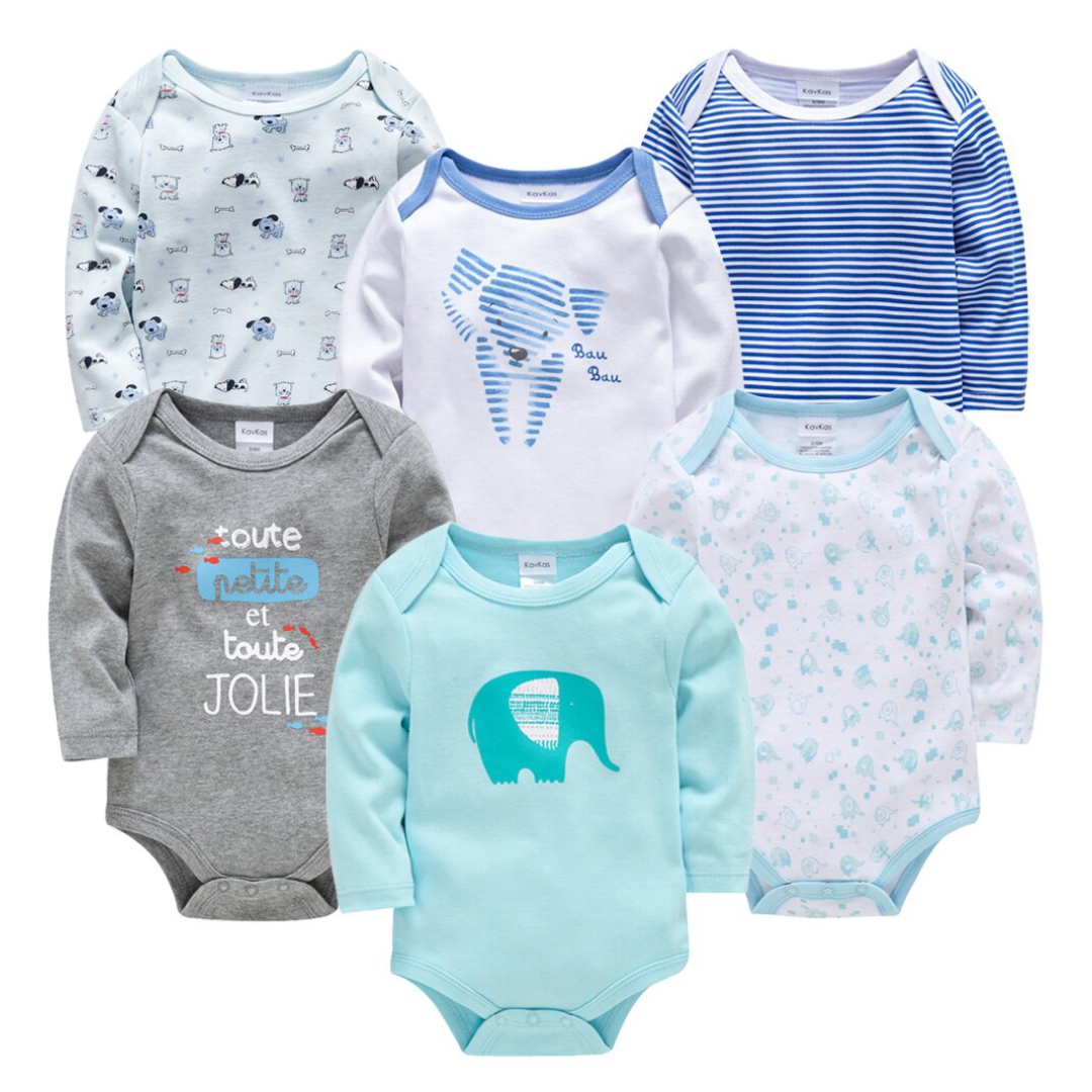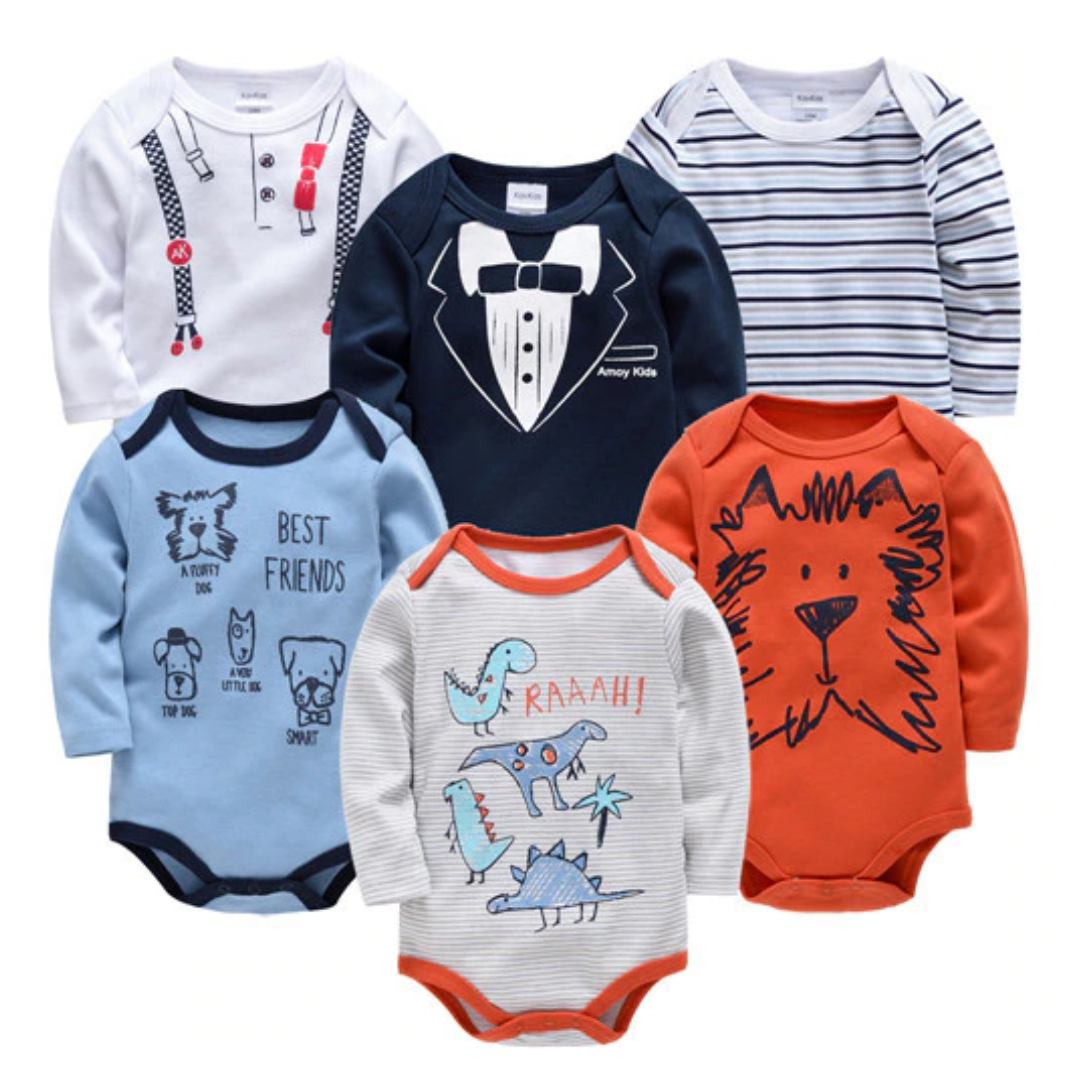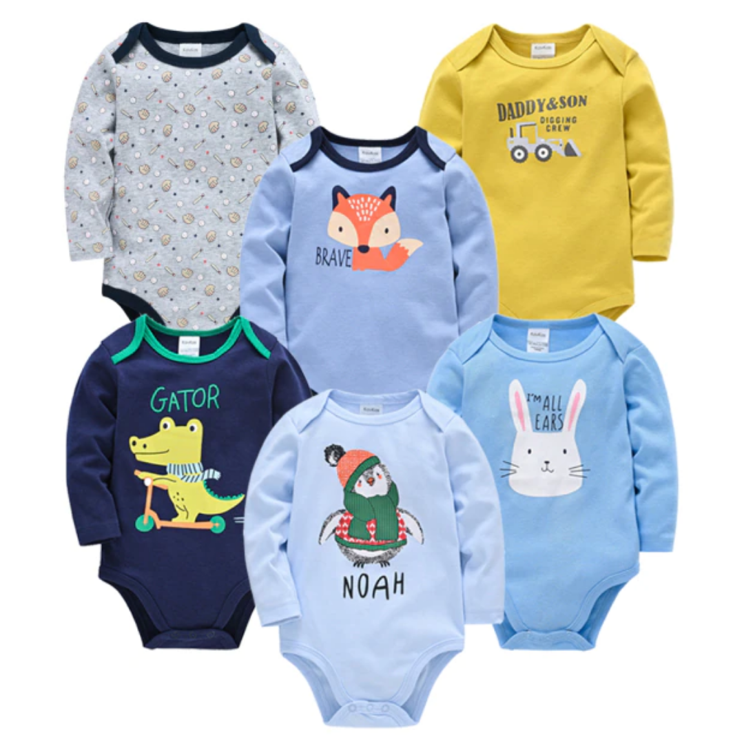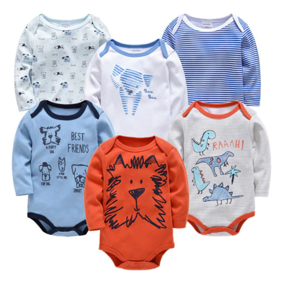 6件套卡通印花男宝宝长袖连体衣