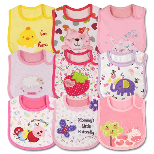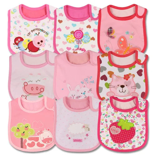 9 teile/satz Baby Mädchen Junge Fütterung Lätzchen Wasserdichte Schürze Cartoon Handtuch Kinder Kleinkind Abendessen Baberos Bandanas Spucktücher